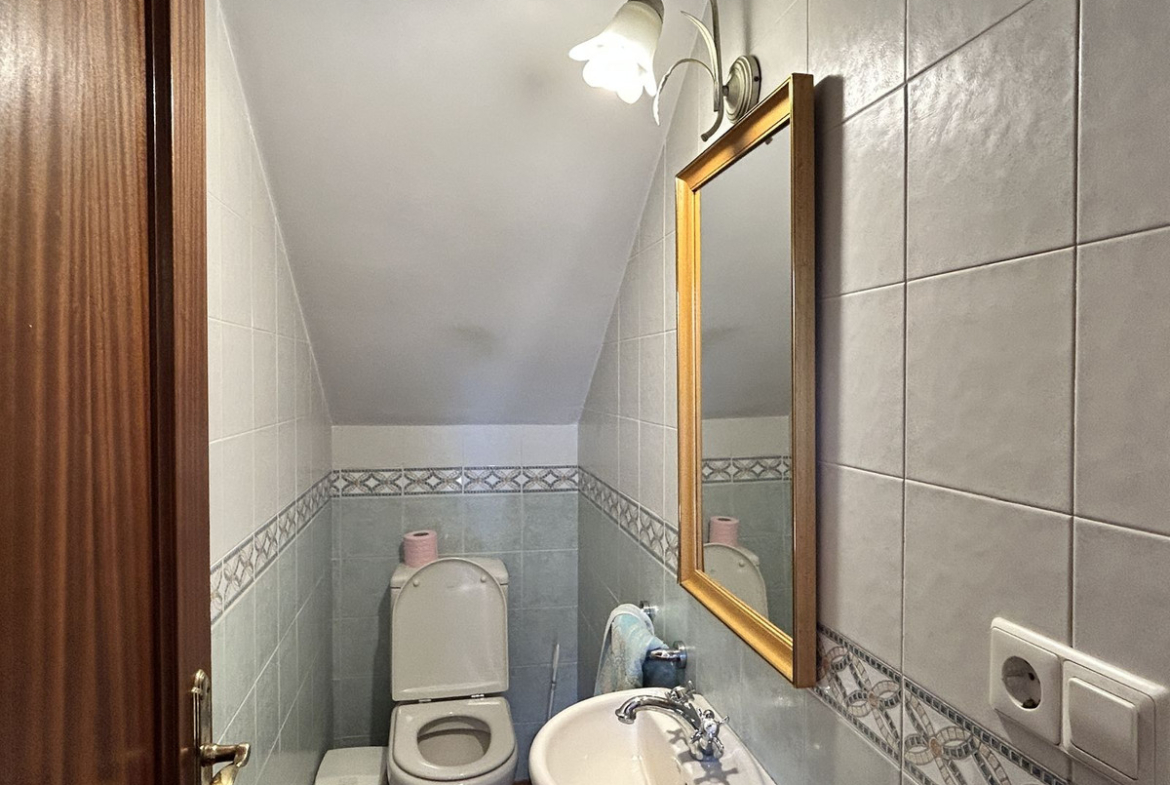 The interior doors and built-in wardrobes are made of solid wood, with a classic design that provides warmth. The wardrobes offer plenty of storage space, blending harmoniously into the rooms.