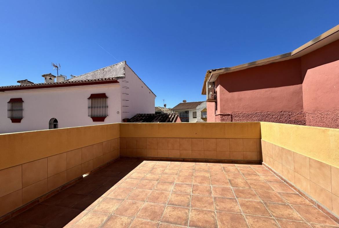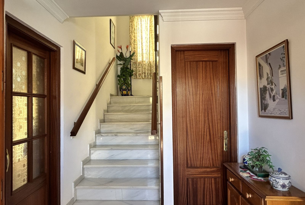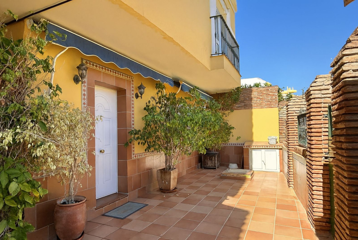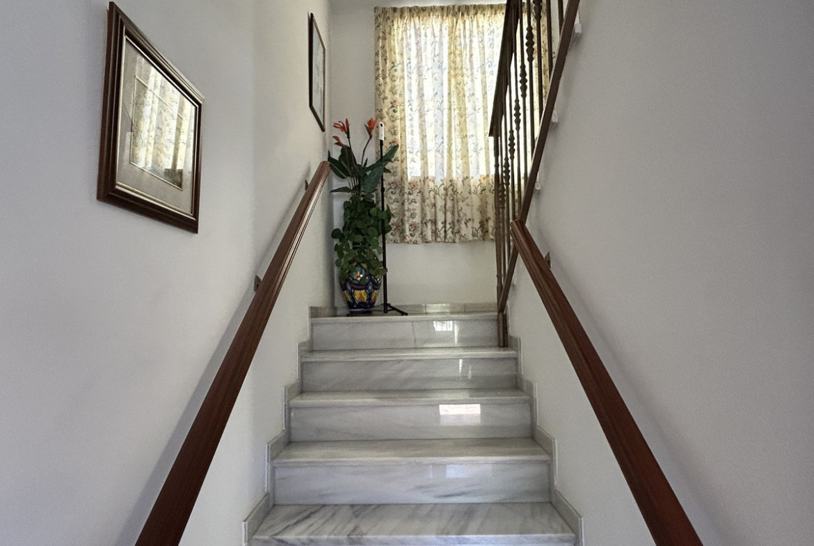 A spacious semi-detached house for sale located in the central area of Los Pacos, Fuengirola. The property has 4 bedrooms, 2 terraces, 3 bathrooms, a guest toilet, an entrance porch, an interior patio, and a private parking space.