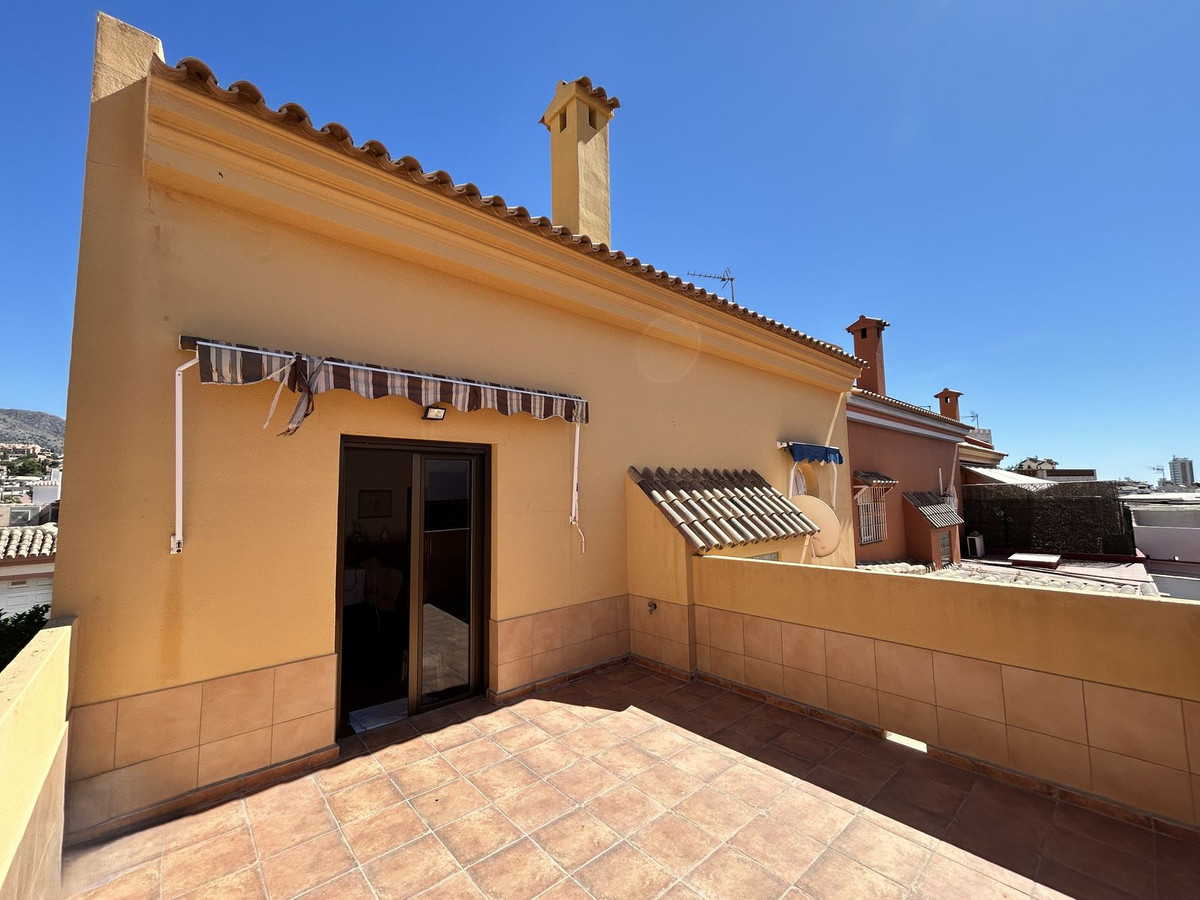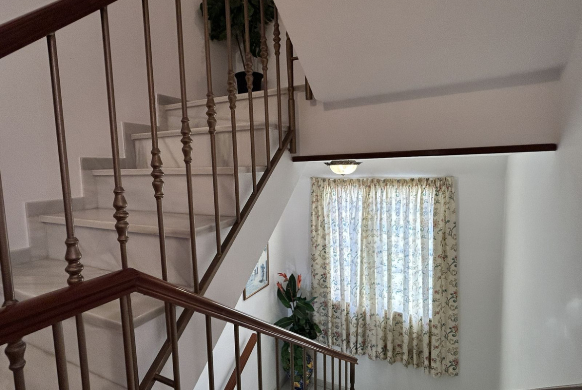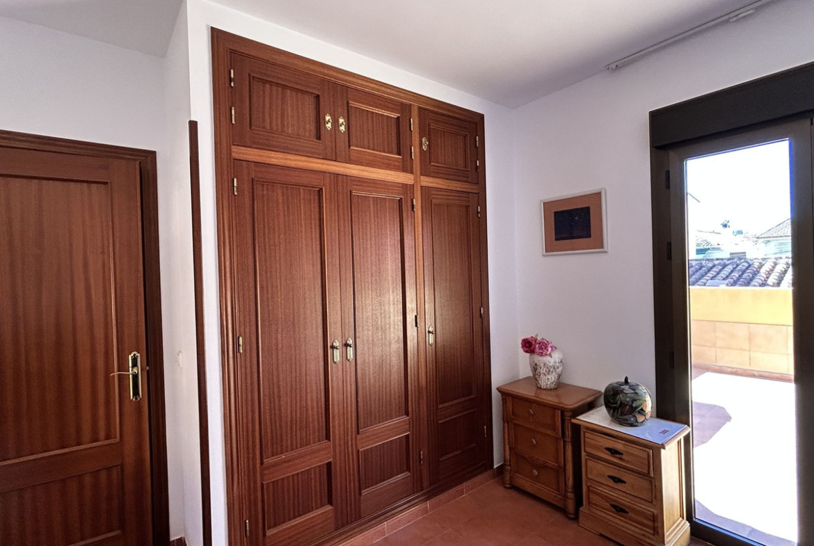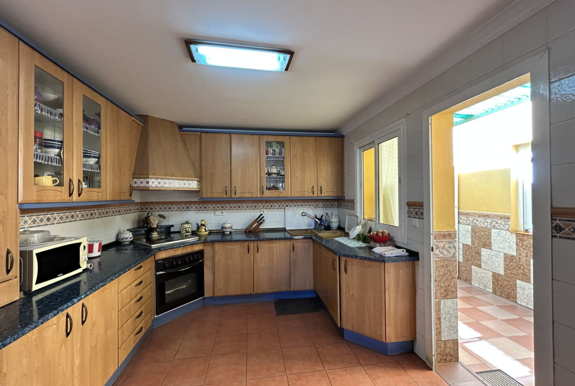 A spacious semi-detached house for sale located in the central area of Los Pacos, Fuengirola. The property has 4 bedrooms, 2 terraces, 3 bathrooms, a guest toilet, an entrance porch, an interior patio, and a private parking space.