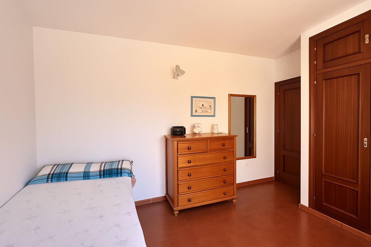 The home's finishes are high-quality: the floor is stoneware with a terracotta finish, providing warmth and durability. The furniture includes classic-style wooden pieces, creating a cozy and timeless atmosphere.