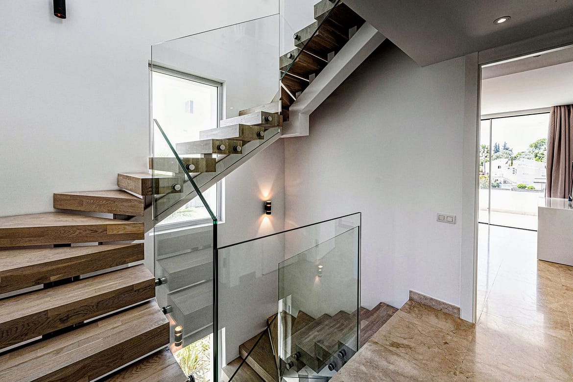 Completed in June 2020, this tastefully furnished residence features an open-plan kitchen flowing seamlessly into the living area, leading out to a terrace and compact garden on the main floor. Upstairs, the master bedroom boasts ample wardrobe space, and en-suite bathroom, and a terrace with sea views, accompanied by two additional bedrooms sharing a bathroom.