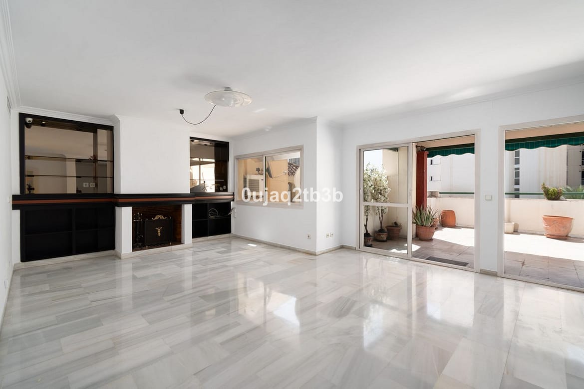 Very large penthouse in the center of Marbella. Sought after location with all services and amenities at door step and just a stroll to the beach. This ample and full of light top floor apartment includes four ample bedrooms with sufficient cupboard space; two large terraces with open views to the mountain and open to the South. Closed gated complex. A must view. Great for a large family.