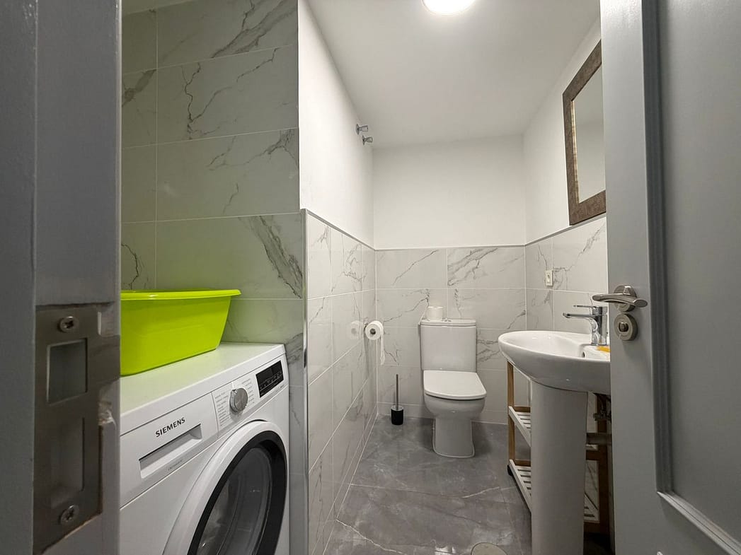 Distributed over **two spacious levels**, the property is thoughtfully designed to accommodate **families or groups of up to 8 people**. On the entrance level, you will find **one bedroom and a full bathroom**, along with a **living and dining area** that connects seamlessly with a **fully equipped kitchen**.