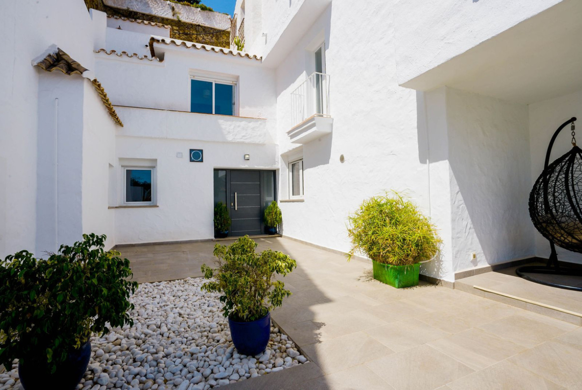 Recently refurbished, 4 bedroom townhouse in gated community located a short walk from Puerto Banus and Centro Plaza. The property is fully furnished and available to rent from mid September up to end of May 2024. The house is built over 2 level and comprises a large open plan living kitchen dining which with floor to ceiling glass sliding doors opening up to a private, walled garden. On this floor you will also find 2 bedrooms, both with ensuite bathrooms along with entrance hall.