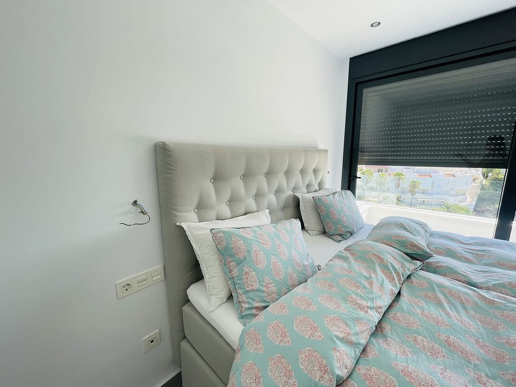 This is a Amazing corner villa with 4 bedrooms for rent with lift from the garage all the way up to the roof terrasse, fully furnished with quality beds etc- underfloor heating. Amazing views also to the sea. It is a very privat villa with lovely sunny terrasses also on the roof.