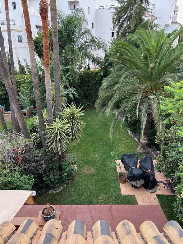Corner townhouse offering maximum privacy, located in the sought-after Lomas de Monte Biarritz urbanisation, between Marbella and Estepona, just 2 km from the beach and San Pedro de Alcántara. Private residential complex with communal swimming pool and gardens.