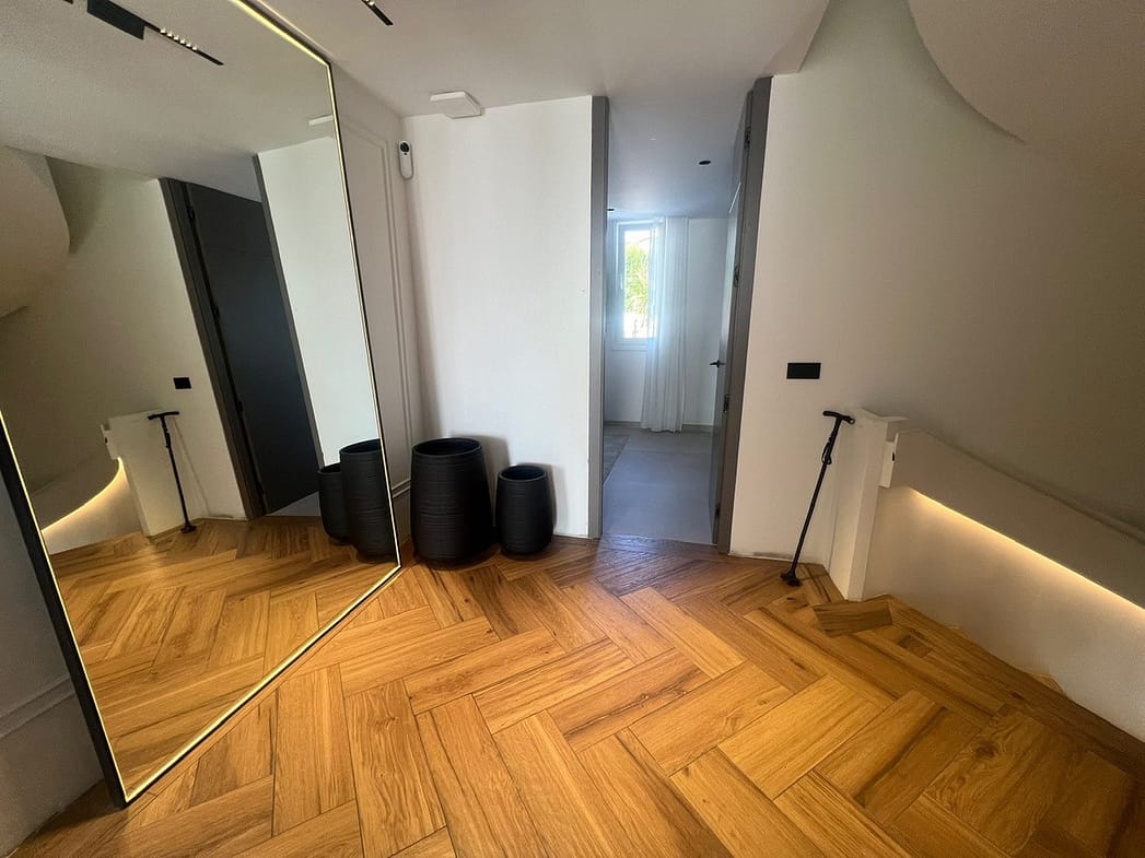Equipped with a smart home system, underfloor heating, integrated air conditioning, Sonos surround sound, and wired Wi-Fi, this home ensures both comfort and convenience. Additional highlights include an anti-limescale water system, instant boiling water tap, two private parking spaces, and an advanced security system.