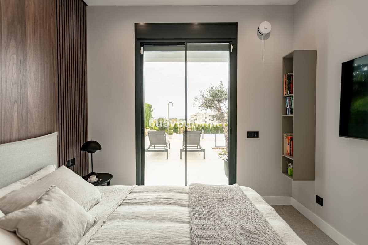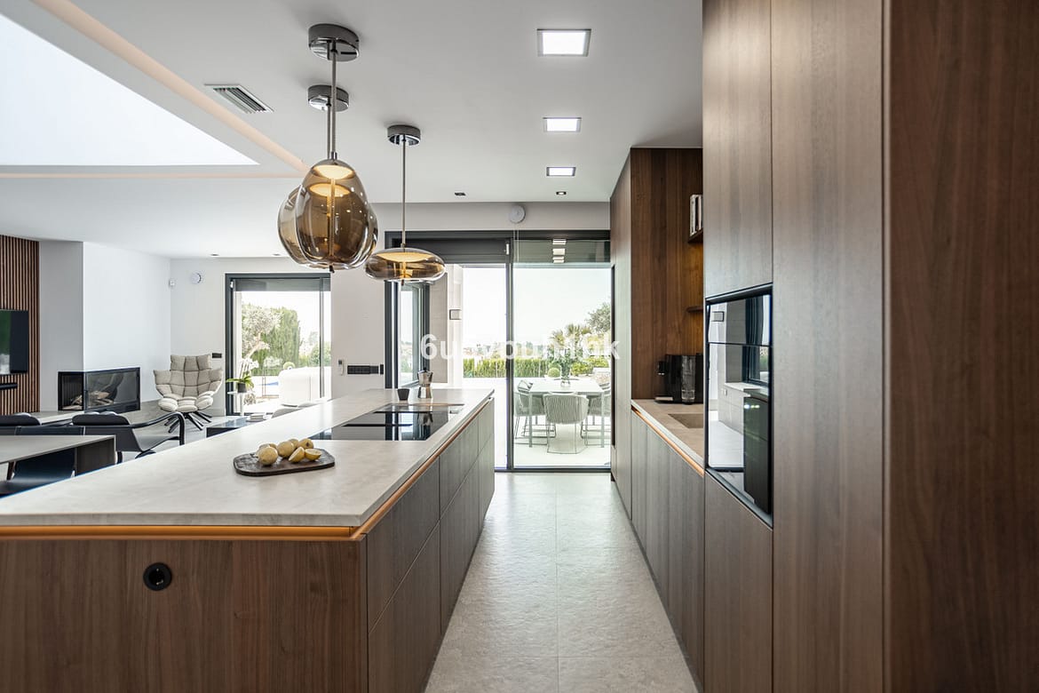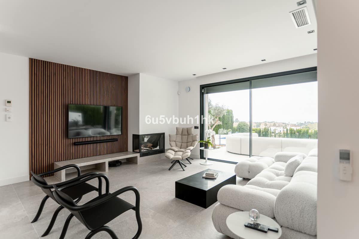 Located in the exclusive and secure community of Resina Golf in Estepona, this fully renovated villa offers an exceptional standard of luxury living. With meticulous attention to detail and high-end finishes throughout, the property combines contemporary design with functionality and comfort in one of the Costa del Sol’s most sought-after residential areas. Set on a 765m² private plot, the villa offers generous interior and exterior spaces across three levels. On the main floor, you’ll find a top-of-the-line open-plan kitchen by Decodan, seamlessly connected to a spacious living area with a designer fireplace. Large integrated windows provide stunning, unobstructed views of the Mediterranean Sea from every angle. This main level also includes a complete en-suite bedroom with a private dressing area and a guest toilet. The outdoor terrace of 190m² is designed to maximize the villa’s privileged setting. It features a heated infinity pool, a fully equipped barbecue area, a shaded pergola for al fresco dining, and a comfortable chill-out space—all with breathtaking views over the sea and the African coastline. The villa features a beautifully landscaped garden with an automatic irrigation system, located directly in front of the pool area. Mature trees and well-established plants create a lush, serene environment, offering both privacy and natural beauty throughout the year. The upper level features two expansive en-suite bedrooms, a dedicated workspace, and a 55m² terrace perfect for relaxing under the sun while admiring the panoramic views. The lower level is designed for indulgence and entertainment. It includes a stylish en-suite guest bedroom, a fully equipped bar and cinema room, a state-of-the-art gym, laundry area, machine room, and a large storage room. Additional features of the property include underfloor heating throughout, electric shutters, and parking for three vehicles. The villa is surrounded by lush landscaping and located within a tranquil golf resort, ensuring both privacy and security in an exceptional natural setting. The location is highly convenient, with an international school, restaurants, paddle club, and a supermarket all within a 3-minute drive. The coastal promenade allows easy access to Estepona’s historic old town and vibrant marina. If you wish to have more information or arrange a private viewing to this outstanding property, don't hesitate to contact us!