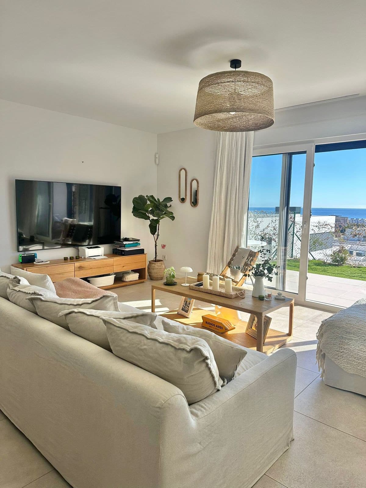 Elevated above its private parking area, the home welcomes you into a bright, open‑concept living and dining area, seamlessly connected to a designer kitchen and guest bathroom. Floor‑to‑ceiling windows frame breathtaking views of the Mediterranean, Gibraltar, and the African coastline, while opening onto a generous terrace and private garden—perfect for alfresco dining and sunset relaxation.