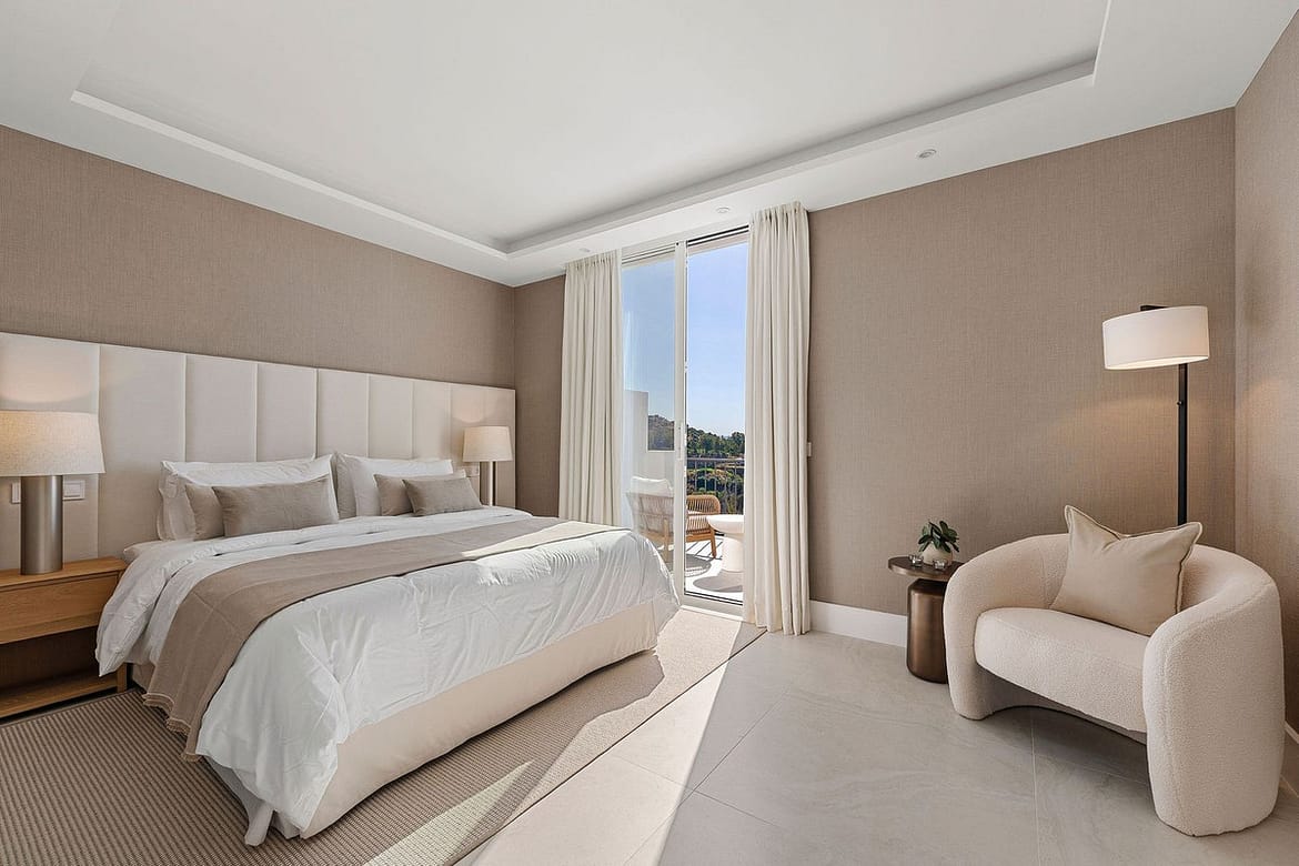 An exquisitely totally reformed townhouse located in the popular urbansiation of El Mirador de La Quinta in Benahavis. As you enter the property, you are greeted with an abundance of light, high ceilings and sea views through the extra high sliding terrace doors. The bespoke open-plan kitchen leads down to the extremely spacious living/dining room and straight out onto the covered terrace leading to the communal gardens offering stunning South-East facing views towards the sea and mountain. On the first floor you have 3 bedrooms and 3 bathrooms with the master bedroom having a generous walk in wardrobe, private terrace and a large bathroom suite with stunning views. On the third floor you have the 4th bedroom suite having access to 2 terraces also with stunning views. The townhouse was completely gutted and has been fitted with high quality materials throughout, the interior decoration and color scheme has been carefully selected creating a classy yet warm feeling. A truly magnificent townhouse in a very popular location.