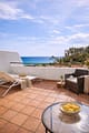 On the upper level, there is a spacious bedroom with beautiful views and a cozy terrace with panoramic sea views.