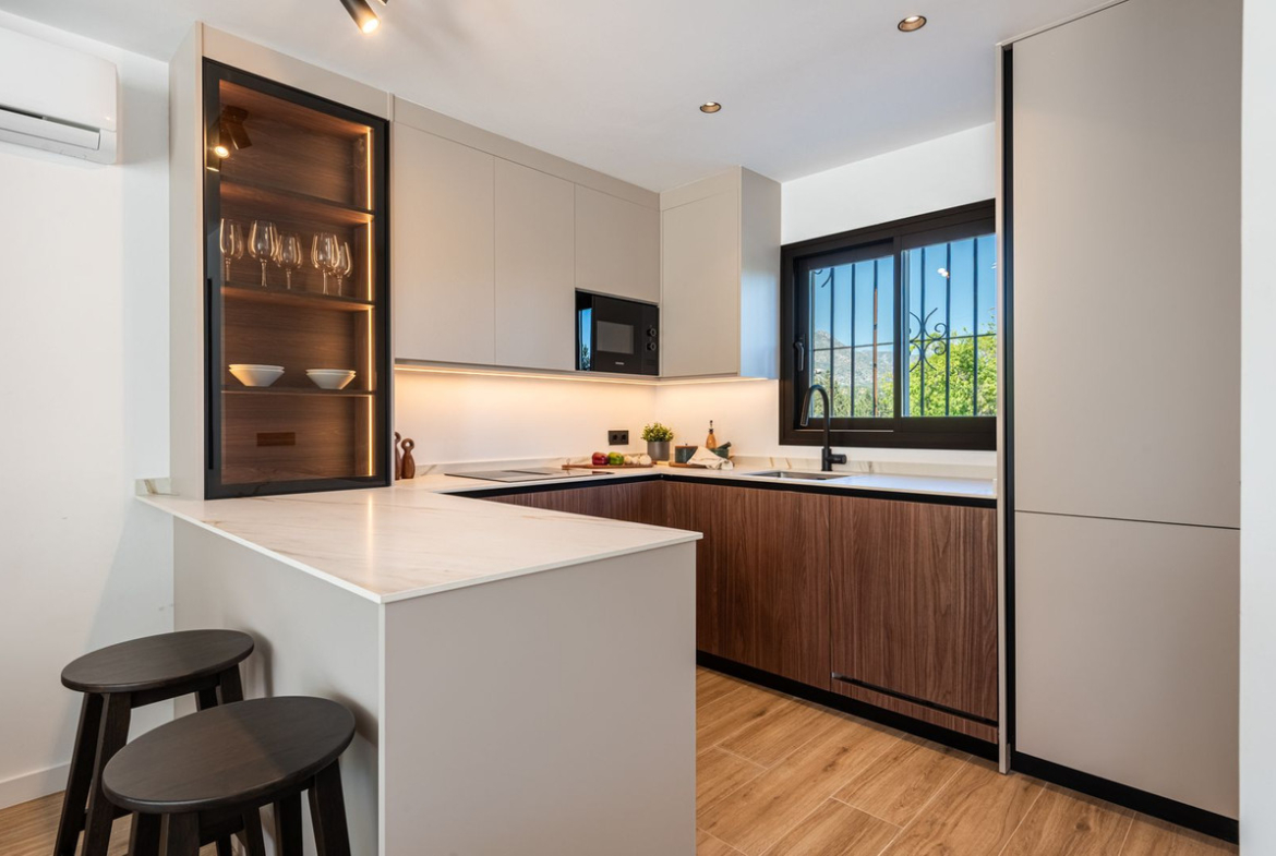 The home features 4 bedrooms, 3 bathrooms, and an additional guest toilet. The open-plan living area flows seamlessly onto a spacious west-facing terrace and garden, ideal for entertaining or relaxing outdoors while enjoying the afternoon sun. An outdoor kitchen enhances the alfresco lifestyle, perfect for enjoying Marbella’s year-round sunshine.