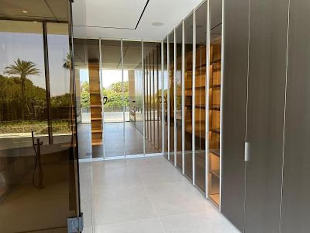 The villa has been built in four levels, including a basement that can be customized and a rooftop terrace with a small heated pool. Designed with an open layout to maximize space and natural light, it includes a private lift to access all levels. On the first level, you find the master bedroom suite with a designer walk-in wardrobe, a terrace, and