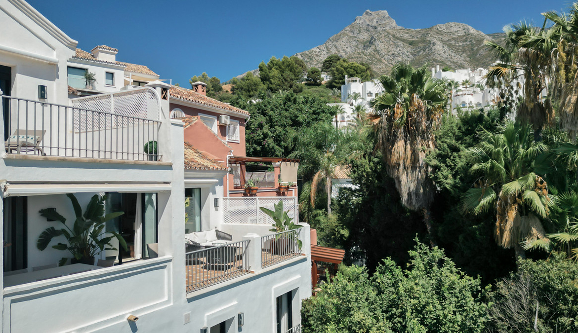 Located in the exclusive Marbella Hill Village, within the prestigious gated Marbella Hill Club, this elegant townhouse offers a rare combination of charm, privacy, and panoramic views. Just five minutes from Marbella Club, Puente Romano, and the Golden Mile, it enjoys one of the most privileged addresses on the Costa del Sol, nestled between the Mediterranean Sea and La Concha mountain.