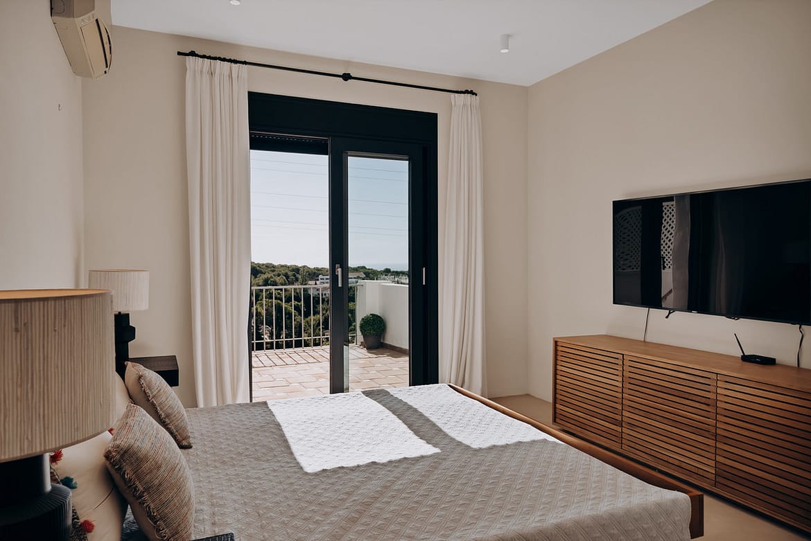 Upstairs, the master suite features a stylish ensuite bathroom, a spacious walk-in closet, and a large terrace with stunning sea views. On the garden level, three additional bedrooms and two bathrooms open to a private garden also overlooking the Mediterranean. This floor is completed by a cinema room, storage space, and a laundry room – ensuring both comfort and practicality.