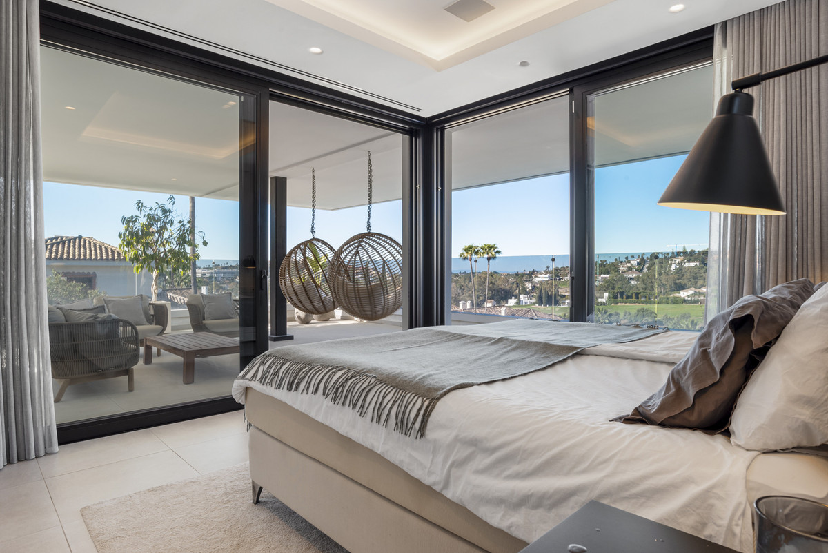 This stunning and modern luxury villa is located in the prestigious area of Nueva Andalucia, Marbella, in the province of Malaga. With its prime location, this property offers breathtaking views of La Concha and the sea. The villa boasts 5 spacious bedrooms and 4 elegant bathrooms, making it the perfect home for a large family or those who love to entertain. One of the rooms has 3 Bunk beds, 6 beds total in that room.