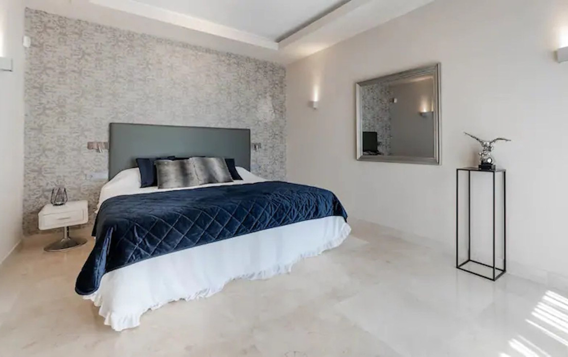 This magnificent villa is an open plan one, and the ground floor flows into the terrace and the garden with lovely sea views and a vast infinity pool, leading to a chill-out area with a fireplace. The villa has ensuite bedrooms on each floor, which gives you 100% privacy.