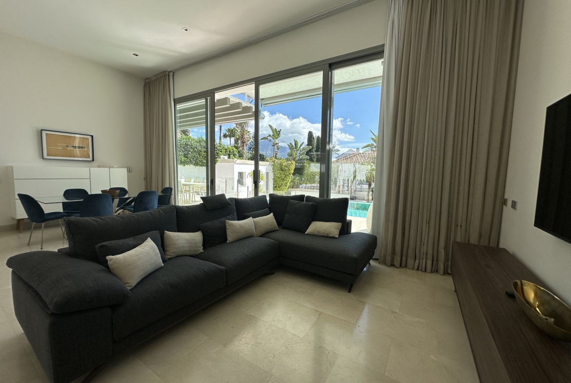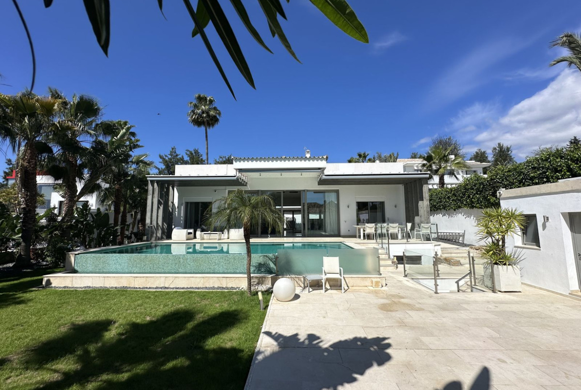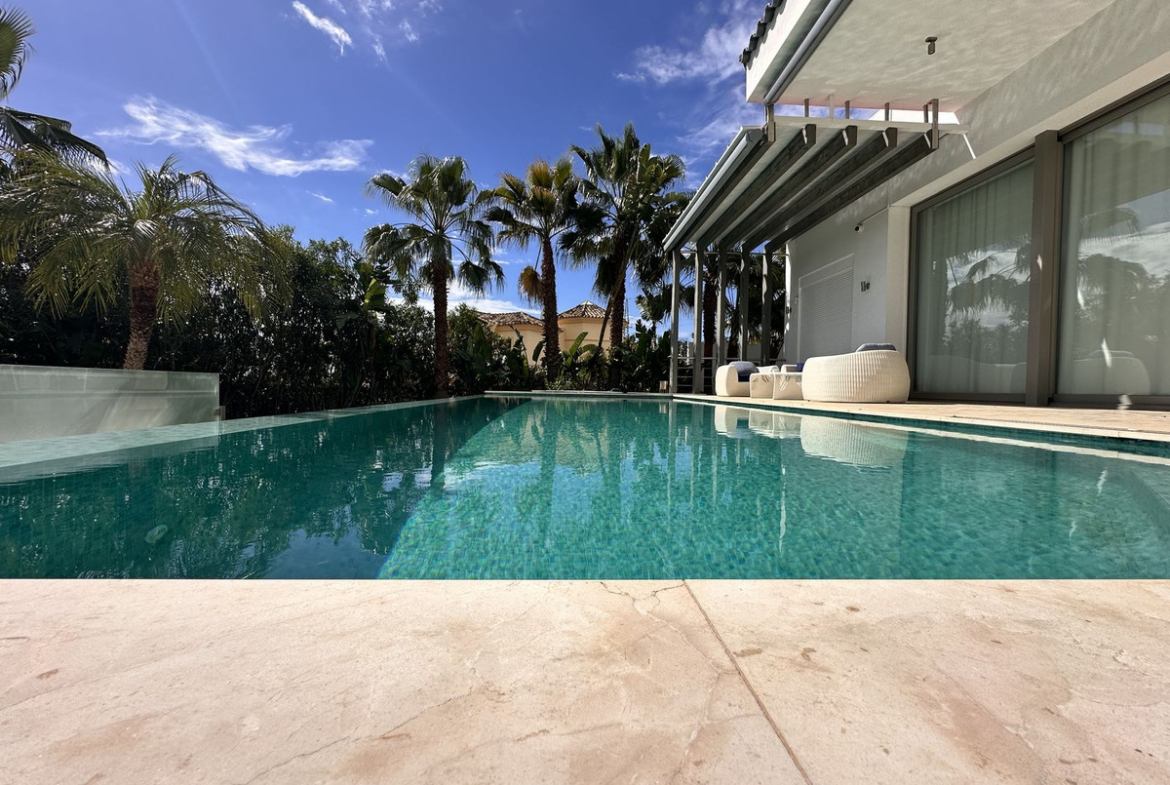 Built in 2016, this modern villa is ideally located in a residential area, a few steps from La Quinta and Los Naranjos golf courses and 8 minutes from Puerto Banús,