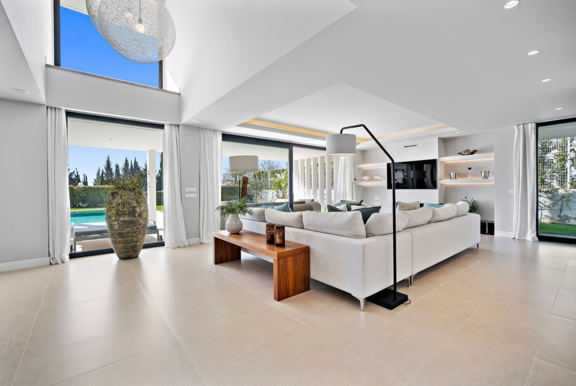 Contemporary villa with great sea views and south facing, with large windows so all rooms are light and airy. The villa is in the municipality of Estepona, set between the mountains and the sea.