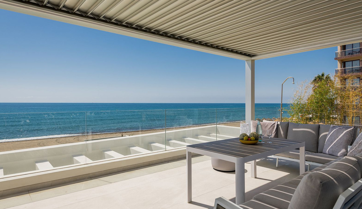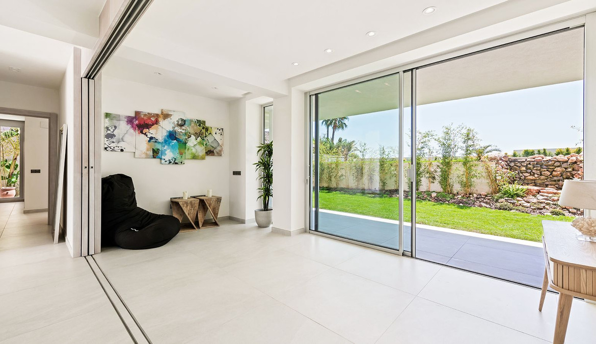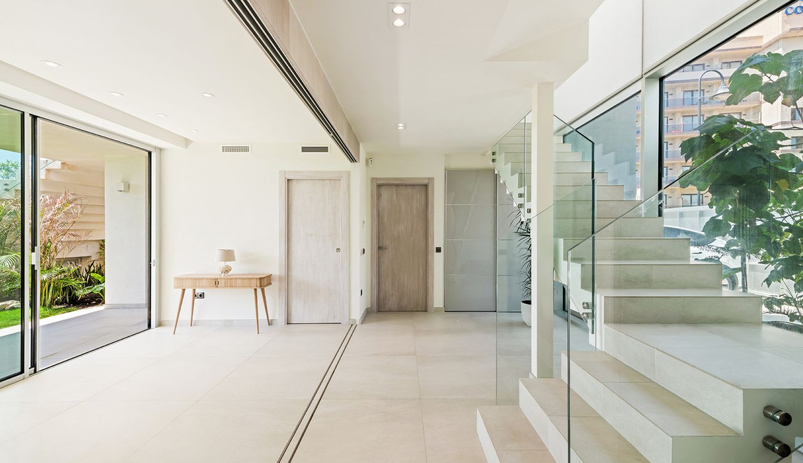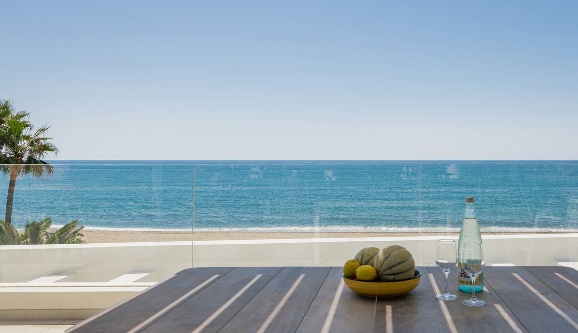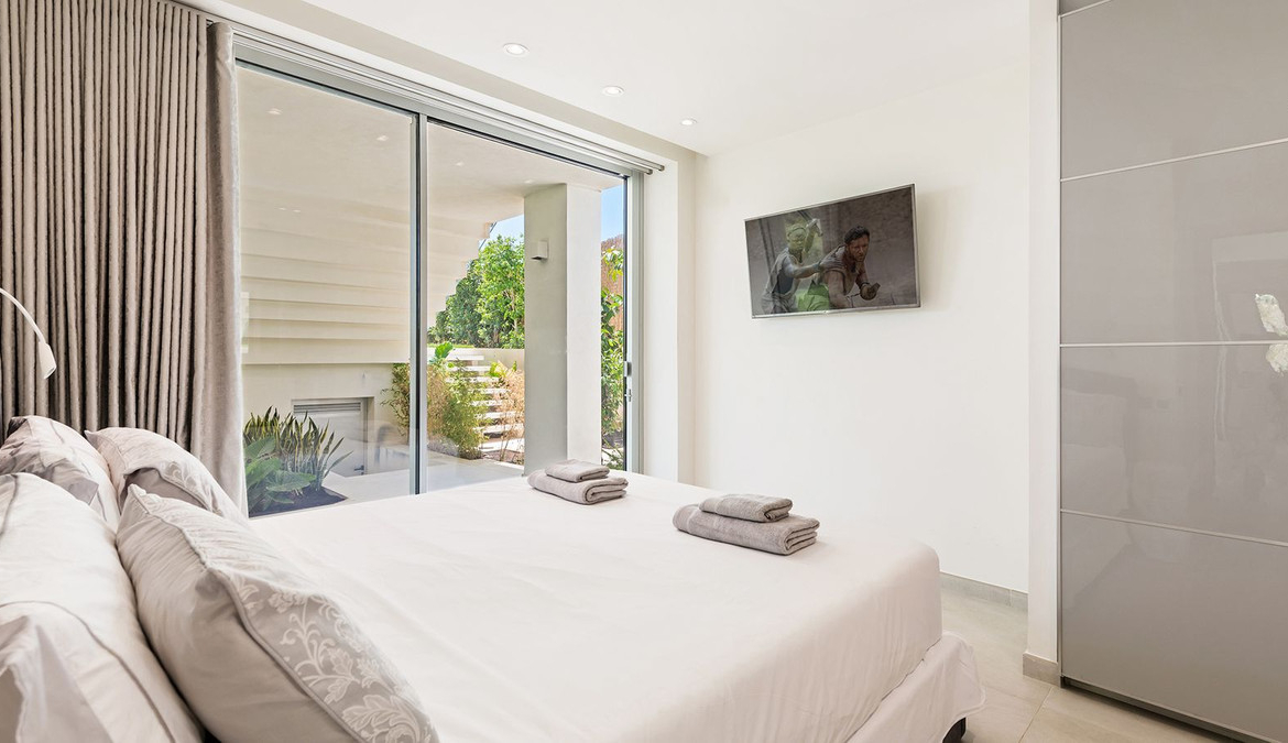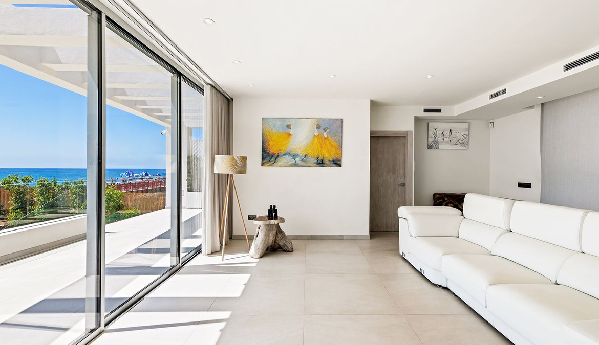 Newly Build Villa with manicured tropical garden. Raised Garden pool area overlooking the beach. Pool has fibre optic floor lighting that sparkles at night. 3 story with rooftop terrace / lounging area to take in the panoramic sea views. Full uninterrupted sea views from first and second floors. 4 ground floor bedrooms with garden access and 1 first floor bedroom with full sea view. Italian made contemporary kitchen with integrated appliances.