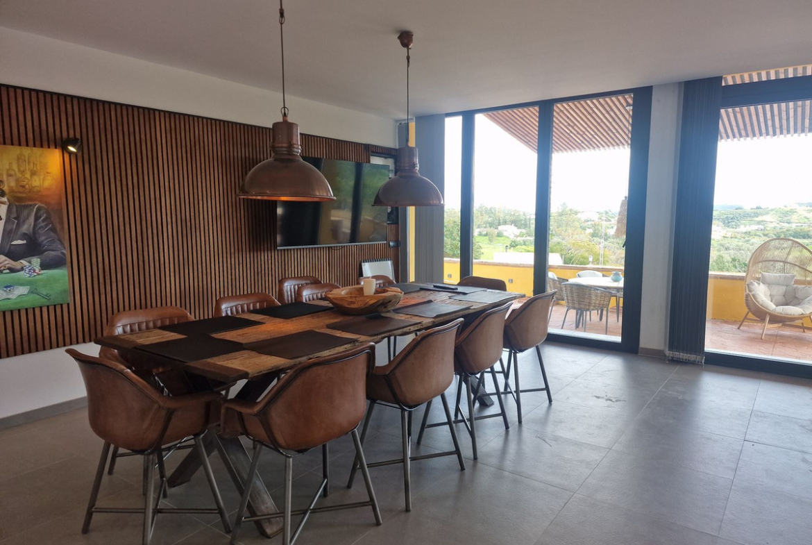 Recently renovated, the villa features high-quality furnishings and a Scandinavian-style interior, creating a bright, cozy, and inviting atmosphere. The large private estate, surrounded by lush greenery and an orchard, provides breathtaking panoramic views—a true oasis of peace and tranquility.