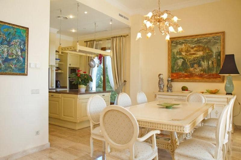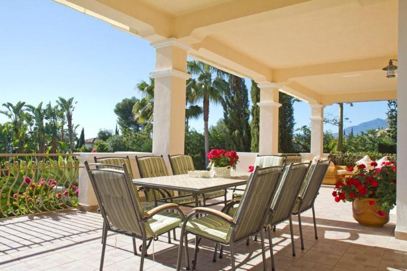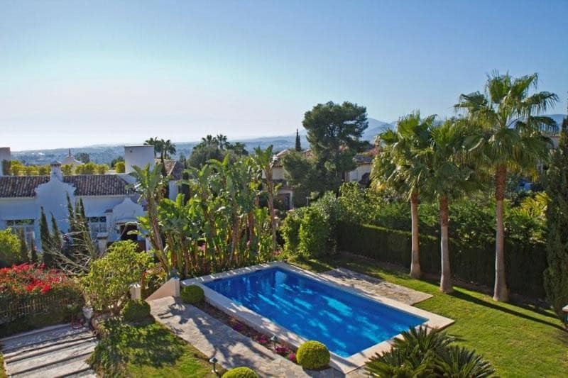 Due to the high demand on luxury properties for summer holidays this is an excellent choice! Situated in one of the most prestigious areas of Marbella, this palatial residence must be seen! Enjoying an elevated location overlooking a well sized plot with manicured gardens, private pool and stunning sea and mountain views. Comprises of sunny large terraces, ample lounge with fireplace, separate dining area and open plan kitchen with all the latest technology services and Gaggenau/Miele appliances. The ground floor consists of 2 bedroom suites and a cloakroom. The imposing centerpiece is a handcrafted, wrought iron/wooden made staircase which leads you up to the first floor with 3 large bedroom suites, both with access to the wide terrace to enjoy sun all day. Boasting a basement of 360 m2 with sauna, whirlpool, gym, laundry, storage and garage for 4 cars. The property stands out because of its elegant contemporary interior, the high ceilings and ample, light flooded rooms. High quality features like wrought iron/wooden carpentry, marble & wooden floors, under floor heating throughout, central air conditioning h/c, automatic water irrigation system, water deposit of 5000l and water purification system. International TV channels, Internet-.Wifi. Multiple service around the house available!