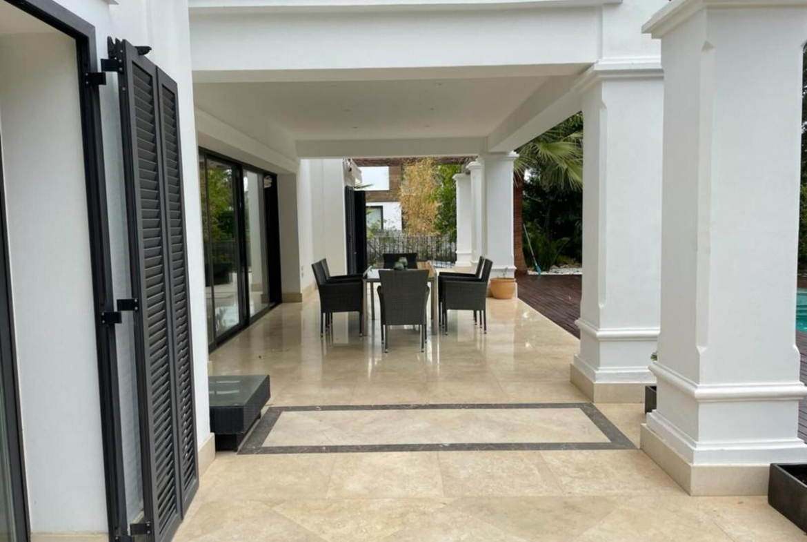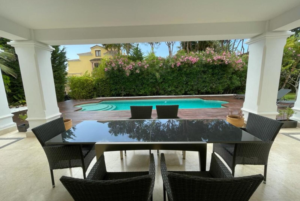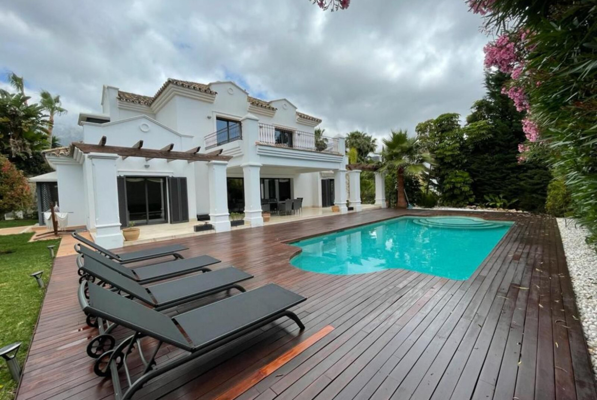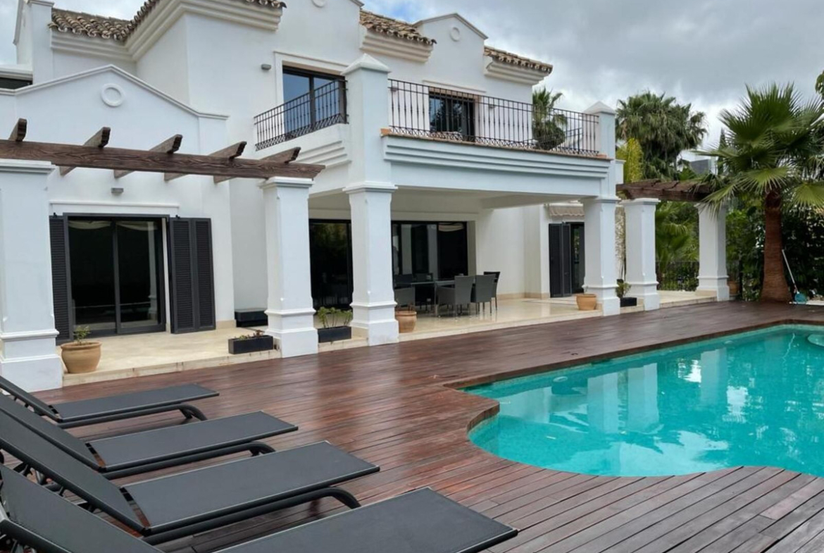 Impressive classic style villa in the exclusive area of Altos de Puente Romano in a gated community with 24 hour security and surveillance. Oriented to the South with the best qualities and on a plot of 1,100 meters. It has a privileged location in Marbella, just a few minutes from all services, the beach and the glamorous Puerto Banús.