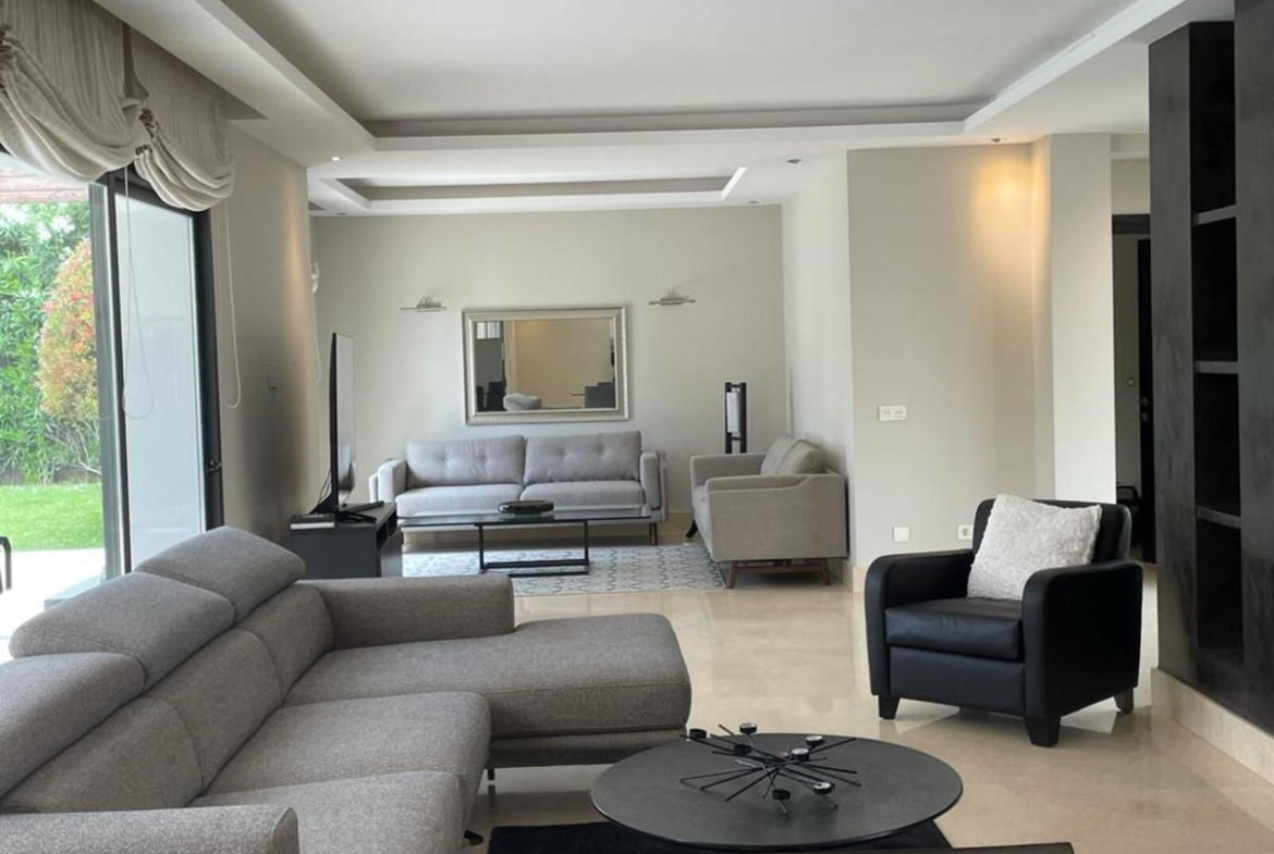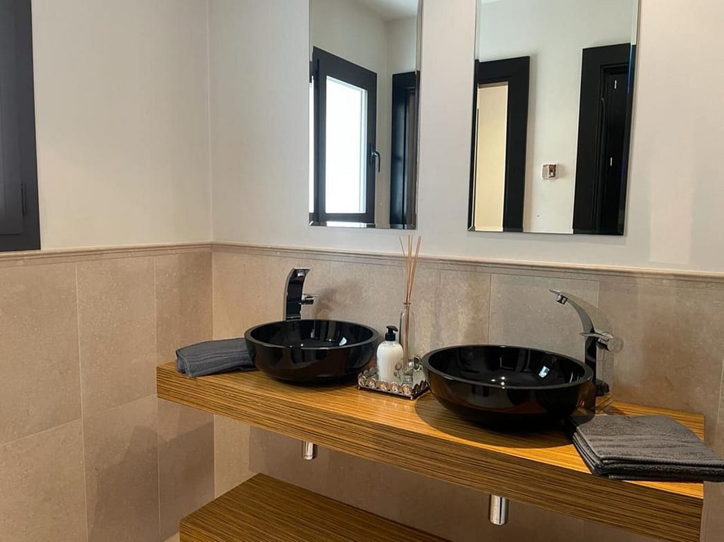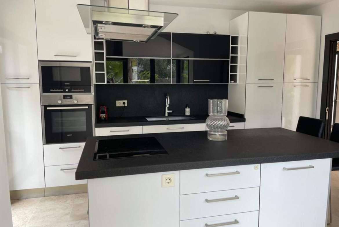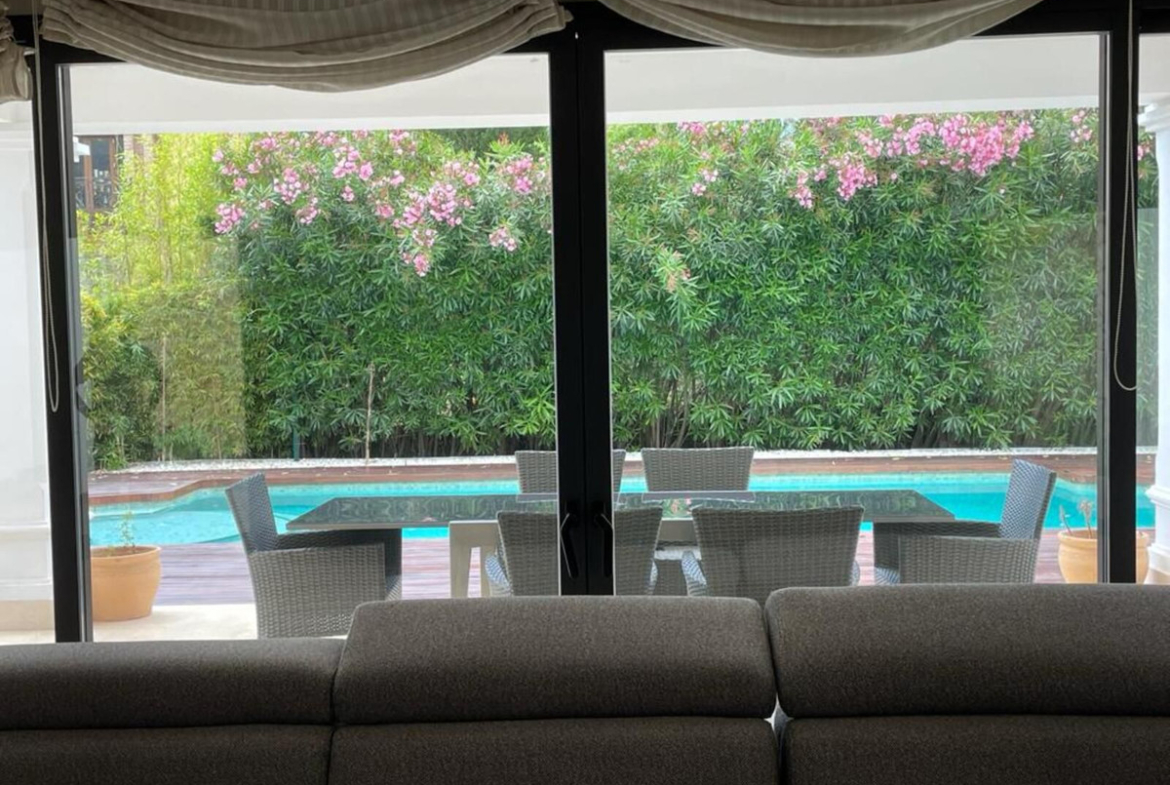 Upon entering the villa, you will find a large modern equipped kitchen, and a large living-dining room with two environments, which leads to an impressive terrace, the pool and the garden. On this same level, we also find a bedroom and a bathroom.