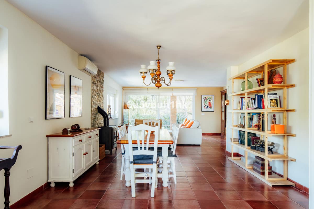 This stunning detached villa, located in Pinos de Alhaurín urbanization, offers a peaceful natural setting where you can breathe fresh air and enjoy complete privacy. The property is perfect both as a family home and as a profitable investment. The villa features two completely independent homes, ideal if you wish to share with family or take advantage of one as a tourist rental. In fact, the ground floor has been successfully used for years as a vacation rental, generating excellent returns. With its modern design, impeccable condition, and a lift connecting both floors, this home is a comfortable, practical, and move-in-ready option. Ground Floor (Home A) Upon entering, you’ll find a spacious and bright living-dining room with direct access to the porch and pool area, a fully fitted independent kitchen, storage room, a master bedroom with en-suite bathroom and large walk-in closet, two double bedrooms, and a full bathroom. The large covered porch is perfect for spending time with family and friends, and from here you can directly access the pool. Upper Floor (Home B) You can reach the upper level conveniently by lift or through the grand staircase. Upon arrival, you’ll be greeted by a lovely porch with beautiful mountain views. This home offers an open-plan living-dining room with a fully equipped kitchen, a master bedroom with en-suite bathroom, another double bedroom, a full bathroom, a guest toilet, and an ironing room. Exterior The outdoor area features a beautifully landscaped garden with automatic lighting, a modern pool with waterfall, a covered barbecue-bar area, an exterior toilet, and a storage shed. There’s also covered parking for up to four vehicles, double-glazed security windows, air conditioning in all rooms, two fireplaces, and every detail designed for your comfort.