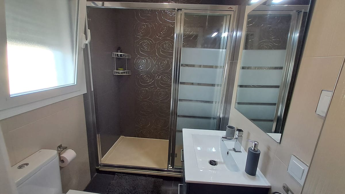 Upstairs there are 2 spacious bedrooms with a shared bathroom + a separate laundry room + a master bedroom of 60m² including a master bathroom with double bath, shower and a cool dressing room. From here you step directly onto a large terrace with access to a solarium where you can enjoy the sunset.