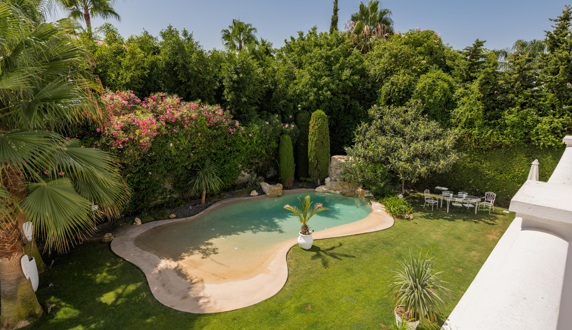 Impressive luxurious Andalusian style villa on the Atalaya beachside, a few steps from the beach.