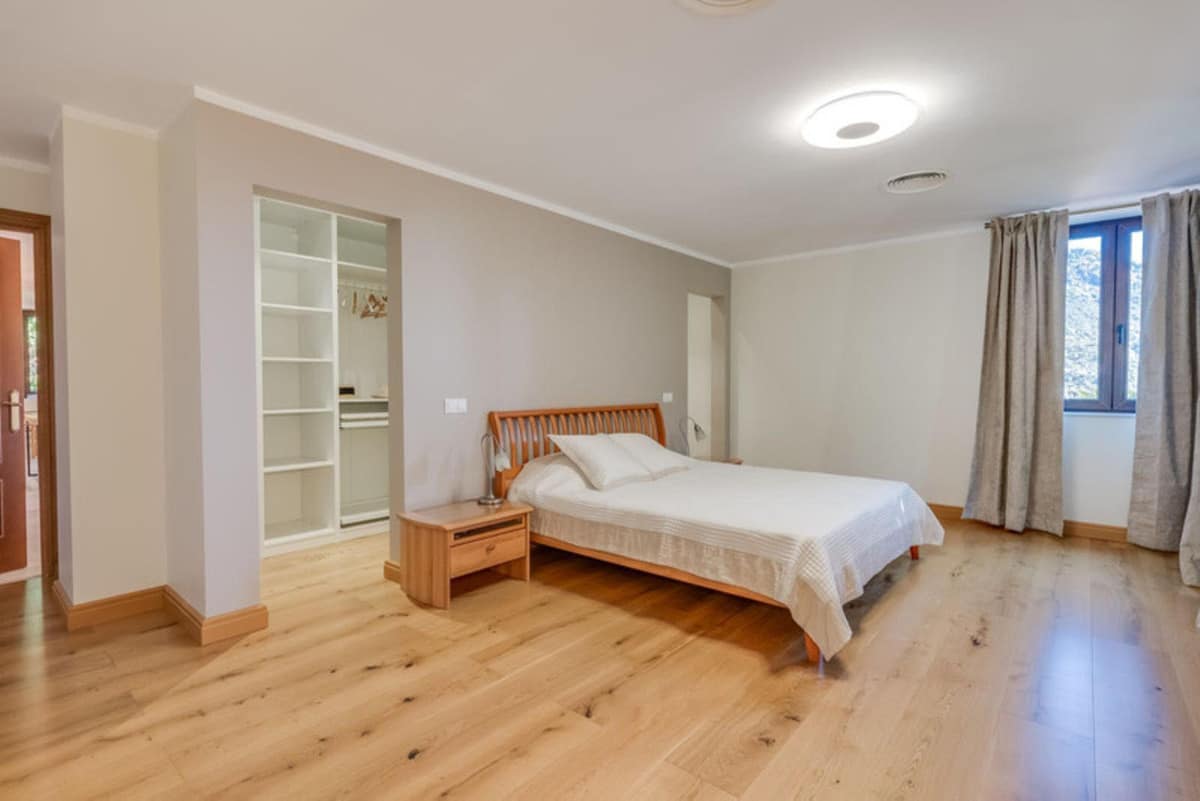 Upon entering the house, you are met with a view of the mountains, forest and garden, adorning each room and immersing you in the beauty and privacy of nature. On the first floor there is a spacious kitchen, a dining room, a bedroom and 2 bathrooms.