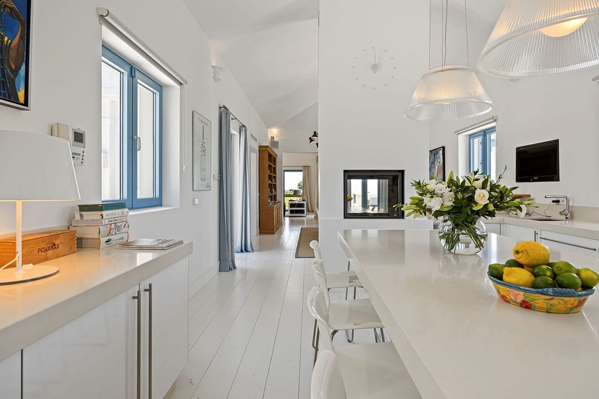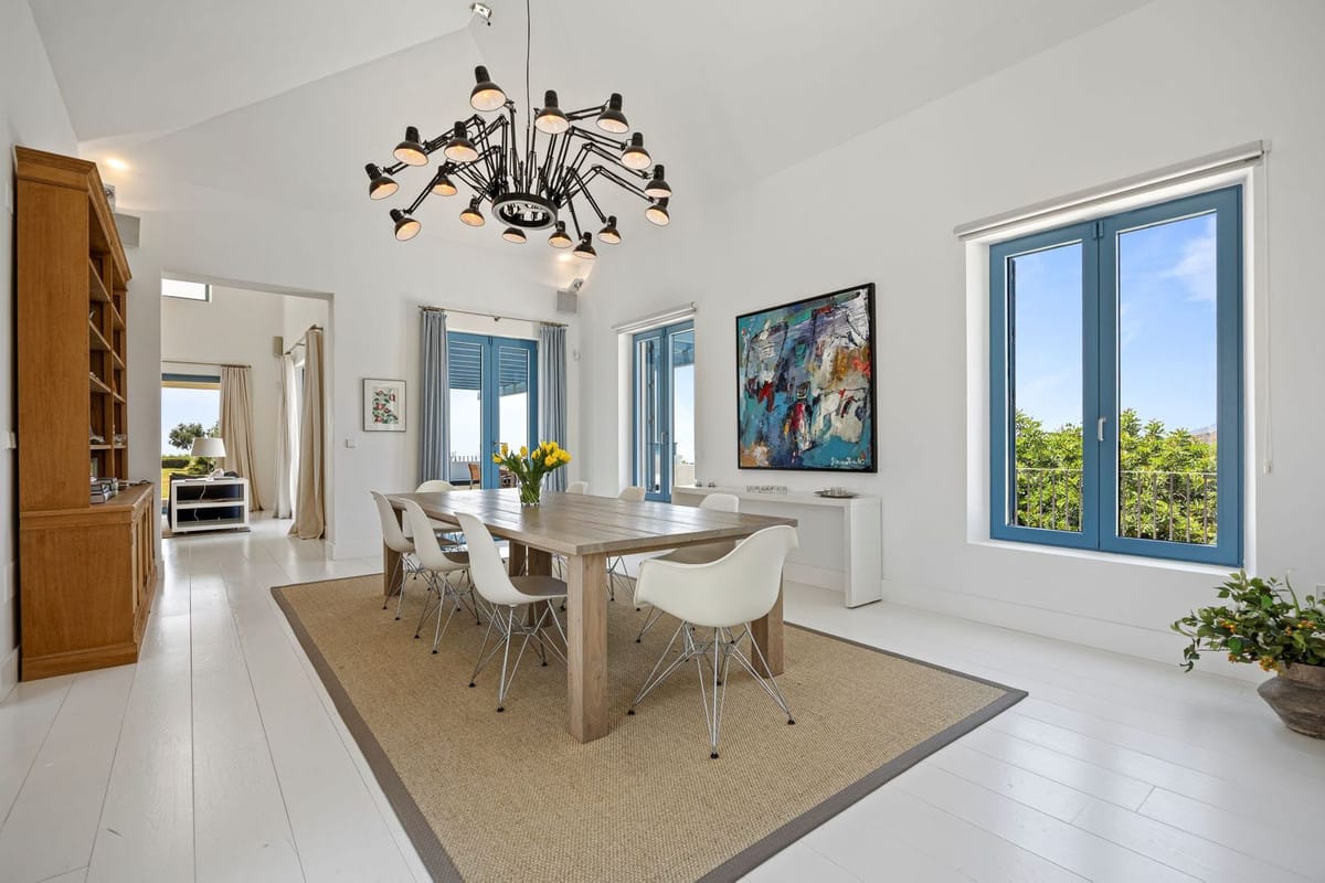 With nearly 700m2 of south-facing interior space, the home is thoughtfully designed for relaxed living and entertaining. Five en-suite bedrooms, expandable to six, are complemented by bright open-plan living areas, a home cinema, and a games room. Outdoor spaces feature a poolside bar, barbecue area, and expansive terraces for year-round enjoyment. The architecture reflects classic andalusian style, with a romantic central patio, whitewashed walls, blue shutters, and a layout that balances family comfort with refined hosting areas.