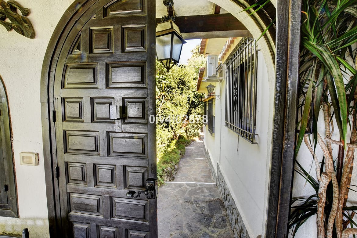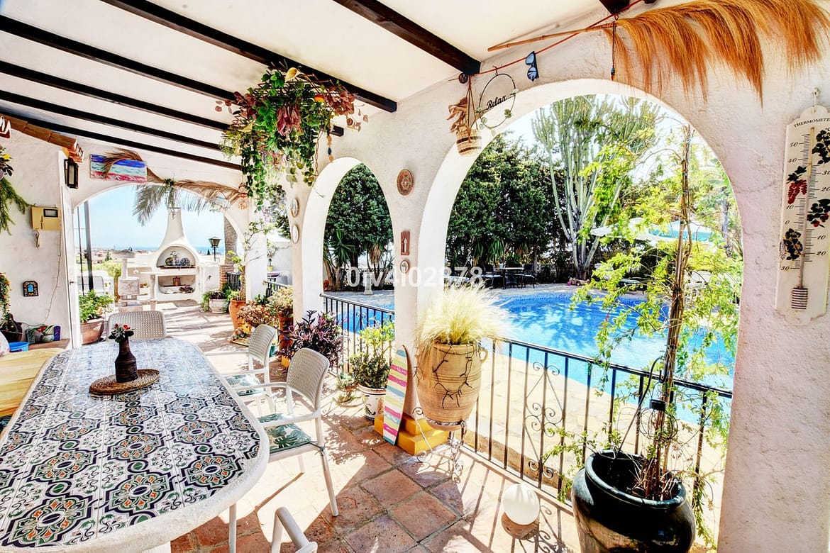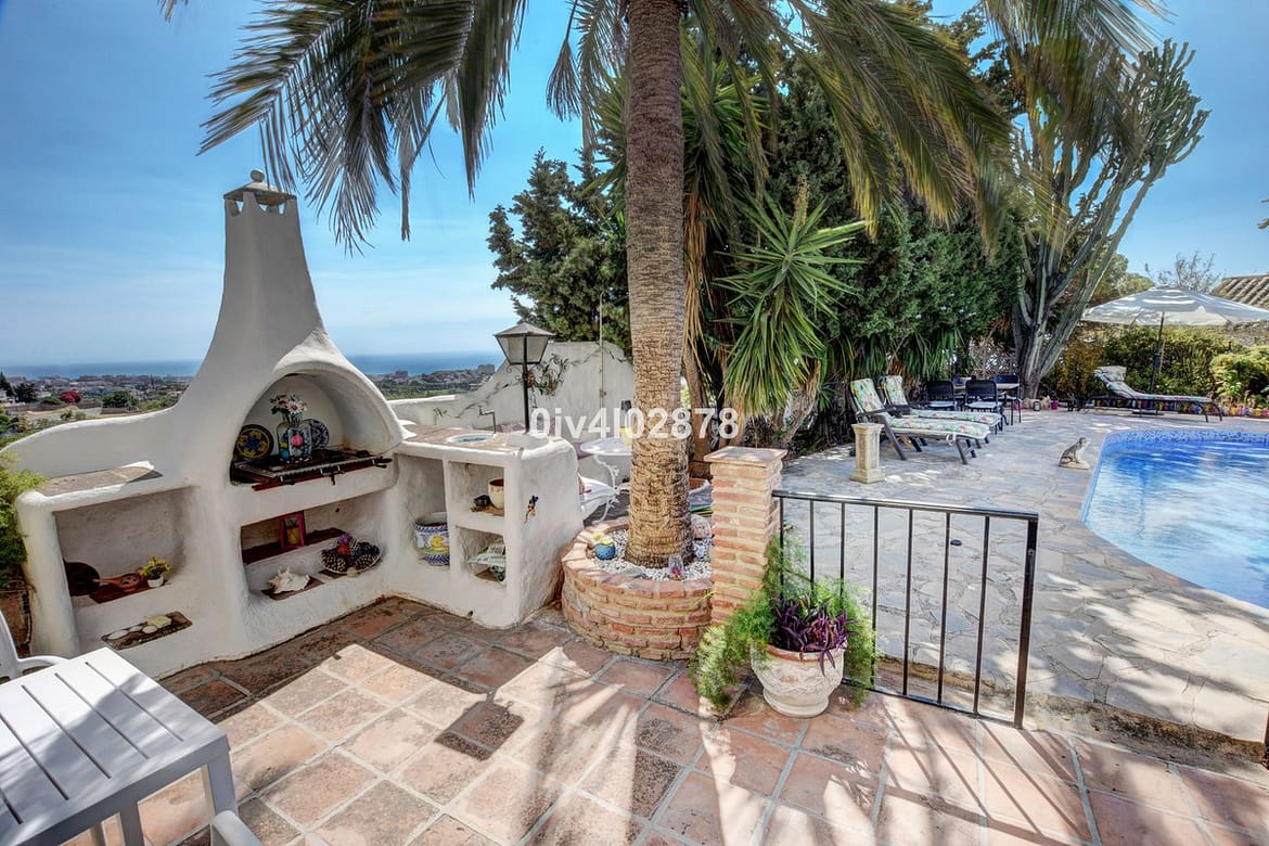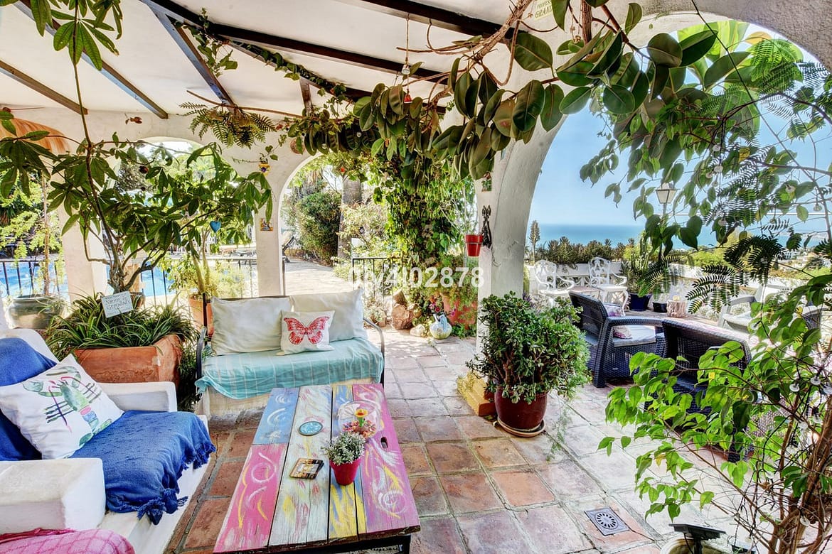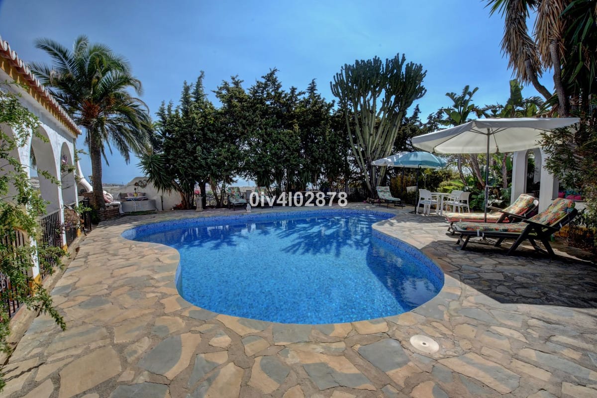 Nestled in an exceptional location that perfectly marries tranquil countryside living with the convenience of village life, this charming Andalusian-style villa is a true gem. Situated on a raised point with a serene, elevated position, the property offers stunning sea views towards Fuengirola, with the potential for panoramic views from various vantage points. The lush, mature trees and beautifully maintained bushes envelop the home, providing both privacy and a timeless character that is truly captivating.