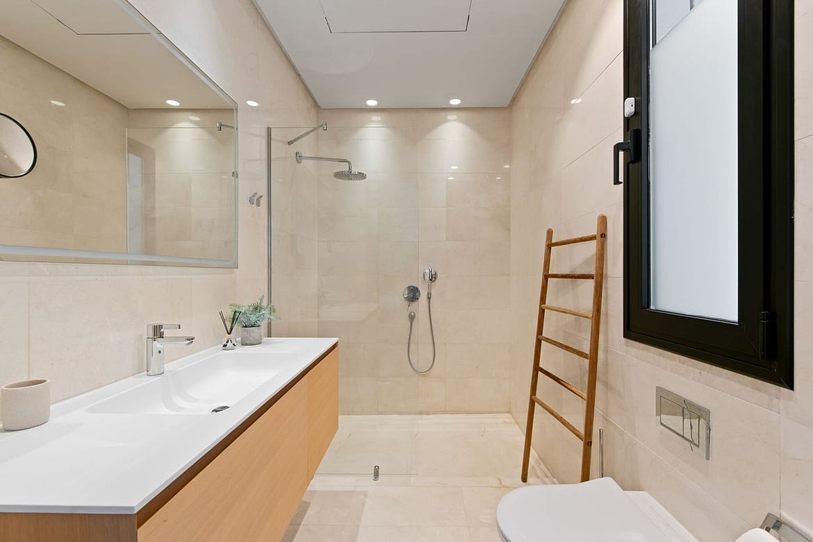 Villa Paraiso showcases modern comforts throughout, including double-glazed windows, cream marble floors, dimmable lighting in principal rooms, pre-installation for home automation, air conditioning, underfloor heating with independent room control, video entry, and an advanced alarm system.