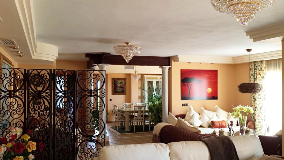 FANTASTIC VILLA OF HIGH ARCHITECTURAL LEVEL, on three floors with impressive panoramic views of the Mediterranean Sea and the mountains. Very exceptional details, such as its own winery, private tennis court, swimming pool with waterfall, park-like garden with several fountains and orange trees. It also offers its own elevator, a large living room with access to the representative terrace, ideal for those who receive a lot of visitors. The villa is located in Estepona, a great opportunity, tranquility and, at the same time, being close to services. The visit is highly recommended.