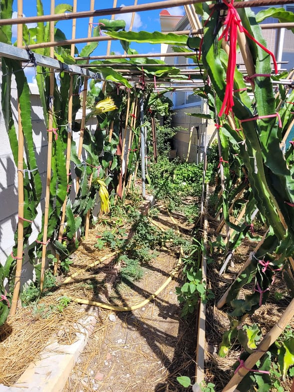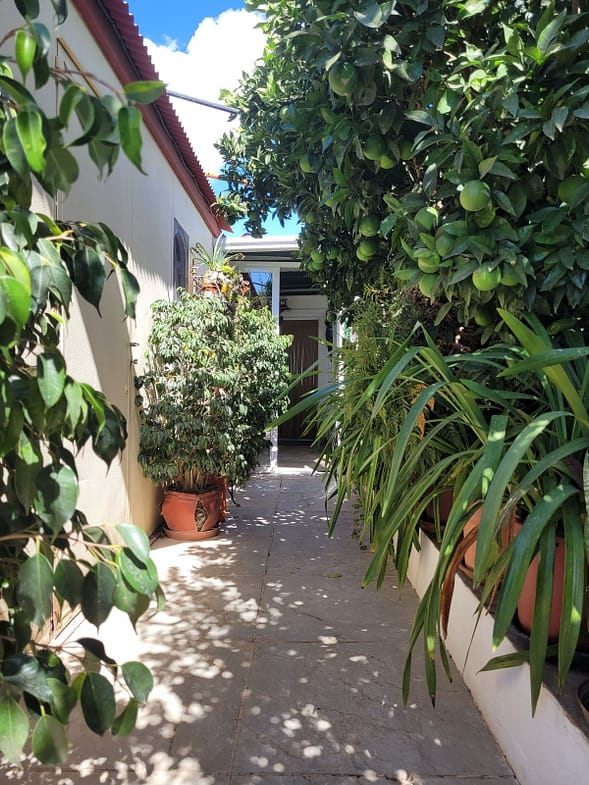 Fruit trees, water and electricity. This house was formerly a large garage.