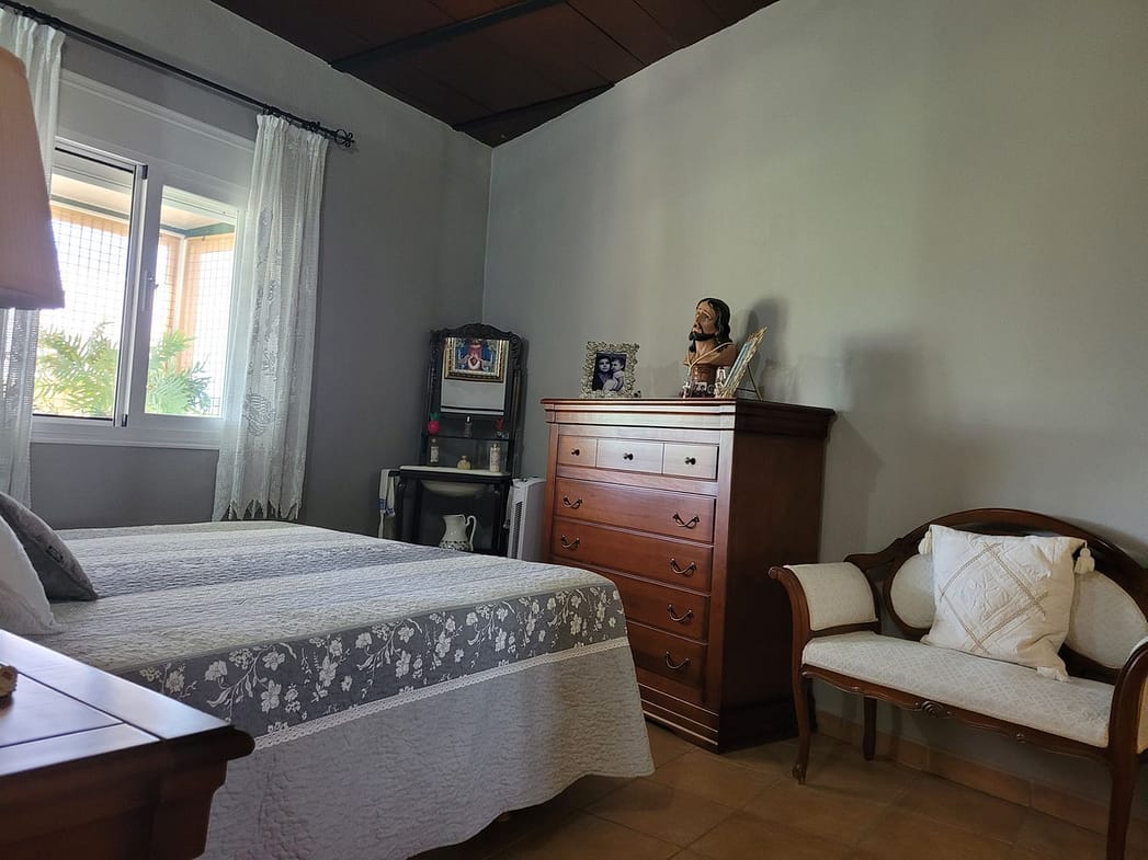 Villa of 1000 square meters, consists of two houses: the main house has four bedrooms and two bathrooms, private pool and garden, two porches, one closed with kitchen, barbecue area, appliances and living room.