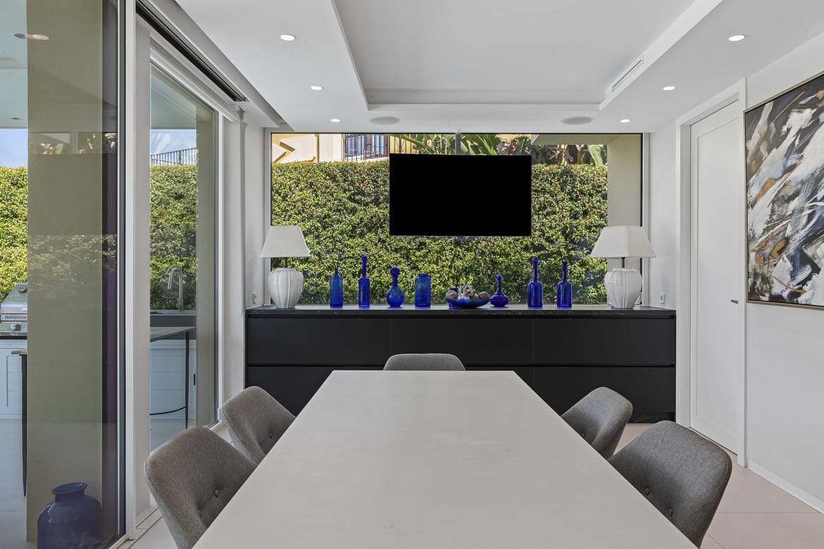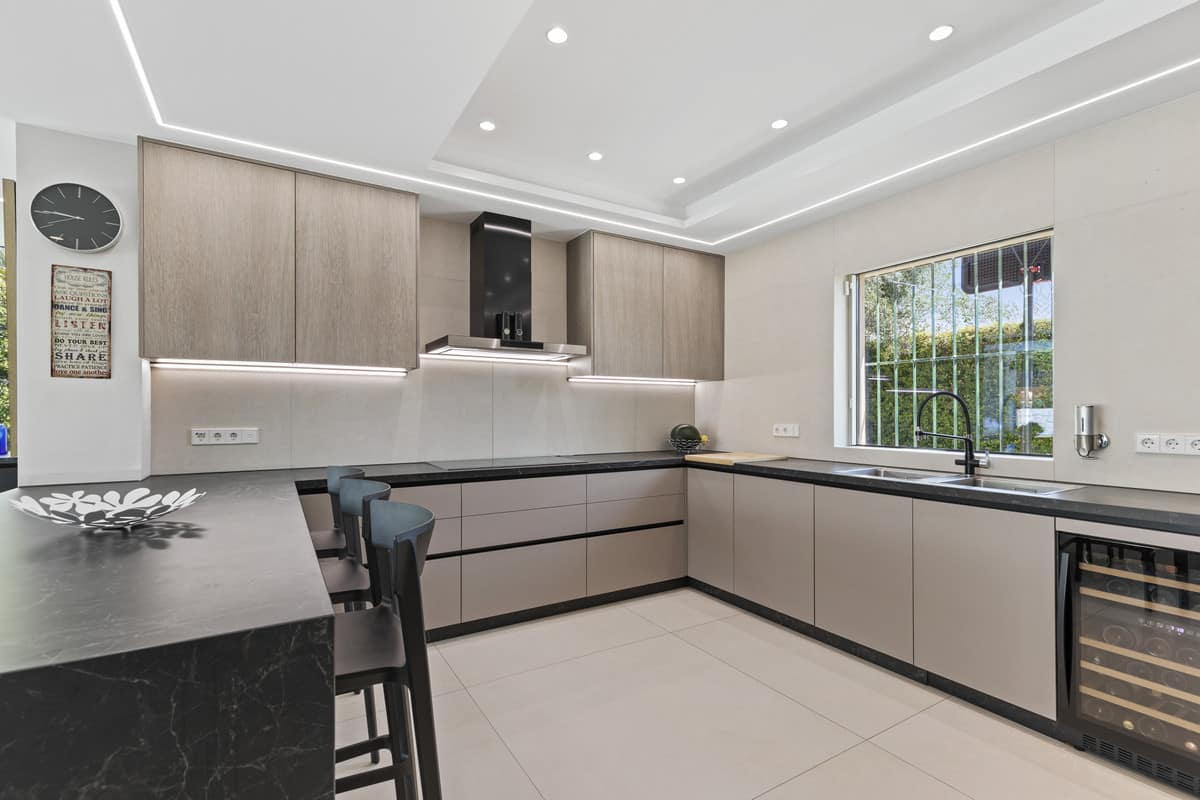 The villa is equipped with every modern comfort, including underfloor heating throughout, central air conditioning, an office with a feature skylight, and a comprehensive alarm system. Some windows also feature discreet security bars for added peace of mind.