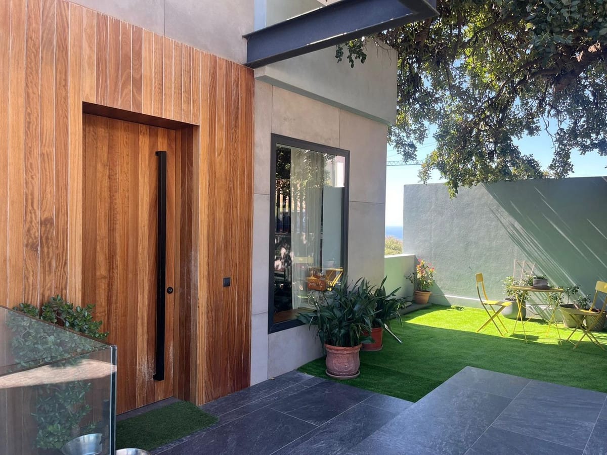 URB Buena Vista. Large villa with sea views in a contemporary style, completed in 2020. Great design and spectacular finishes and top quality materials. The villa has a plot of 600 M2 and a total constructed area of 300m2 on two floors plus a basement. It is distributed in 5 bedrooms, 3 bathrooms and a toilet. Large living room with open kitchen with island access to a 26m2 terrace with spectacular sea views. Lutron brand home automation for lighting control and electric curtains, Kreon Lighting, 20 Photovoltaic Panels with 5 kWh energy generator, Wallbox charger for electric vehicles, exterior finishes in natural stone and porcelain, the material and granulated format of Porcelanosa, natural PORCELANOSA brand wooden staircase, double glazed windows with argon gas chamber and 5×5 guardian sun 4×4 camera, Bang&Olufsen sound and professional TV in living room and basement, swimming pool finished in natural stone Indonesian Balinese style with salt water and filtration Daysi, Fenix Kitchen finished in black and natural wood elements with porcelain countertop, NEFF appliances, Teppanyaki, Pando wine cellar, 70cm wide matte black refrigerator, main bathroom furniture and INBANI brand marble, main bathroom finished in large format Italian porcelain tile, underfloor heating water in the entire house with independent areas, independent air conditioning by zones, DAIKIN aerothermal machine,