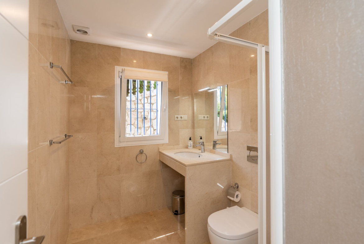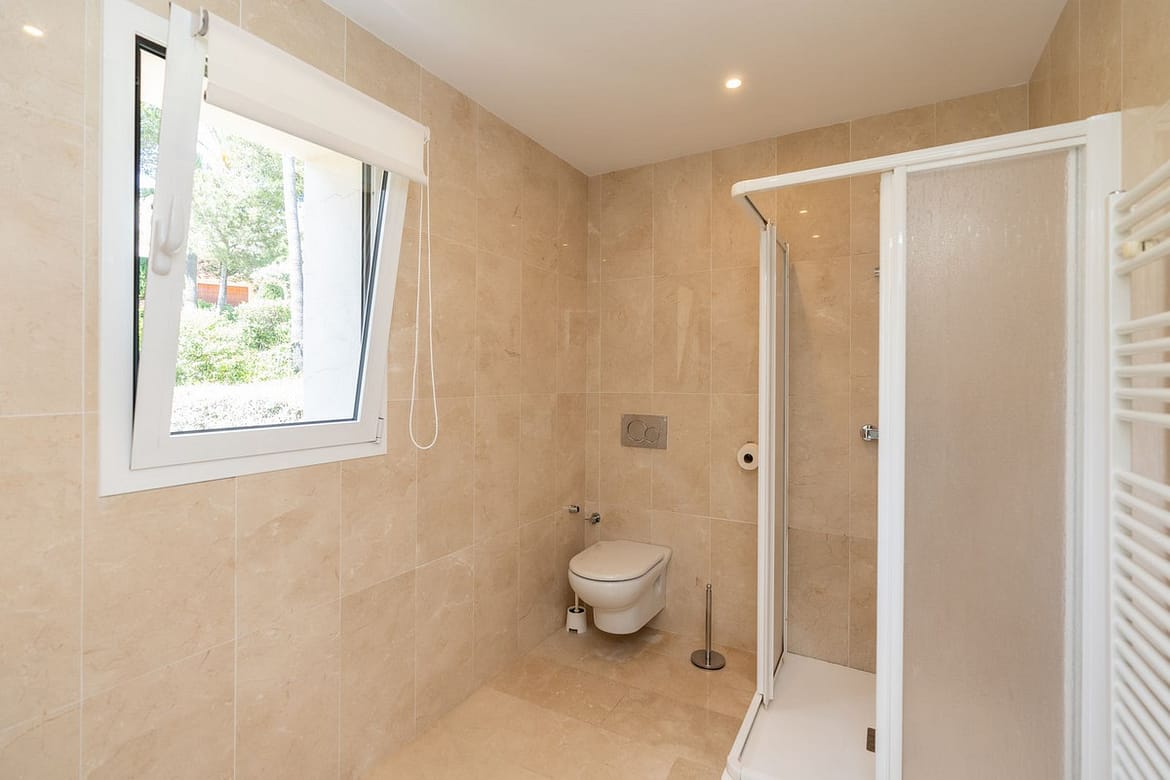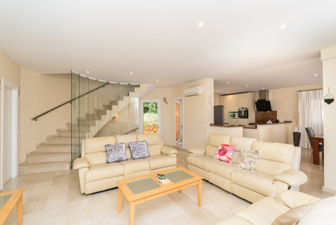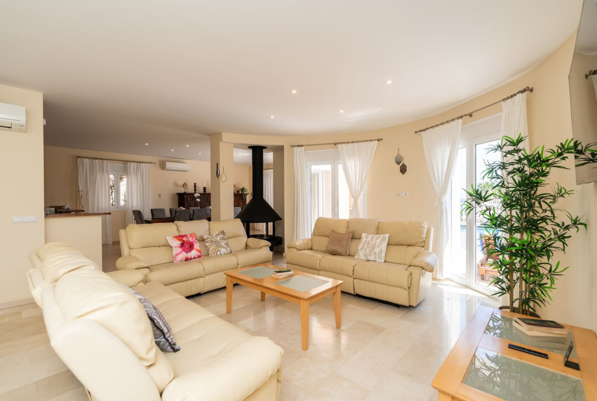 Completed in 2018, this three-story villa—all levels above ground—boasts traditional architecture and style throughout. The main level features a generous open-plan layout, seamlessly connecting the living room, dining space, and modern kitchen. These areas extend effortlessly to a heated swimming pool, equipped with a retractable cover, and a choice of sun-soaked or shaded terraces. Whether you're basking in the sun, dining al fresco, or enjoying panoramic sea views, every detail caters to luxurious coastal living. One en-suite bedroom completes this level.