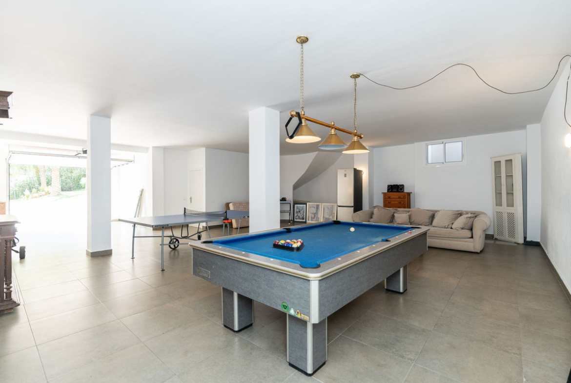 Upstairs, you'll find three additional bedroom suites, including one with access to a spacious private terrace offering breathtaking views of the Mediterranean. The lower level houses the fifth bedroom suite, a games room complete with pool and table tennis tables, and direct entry to the expansive garage.