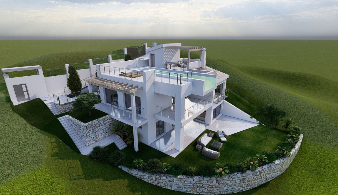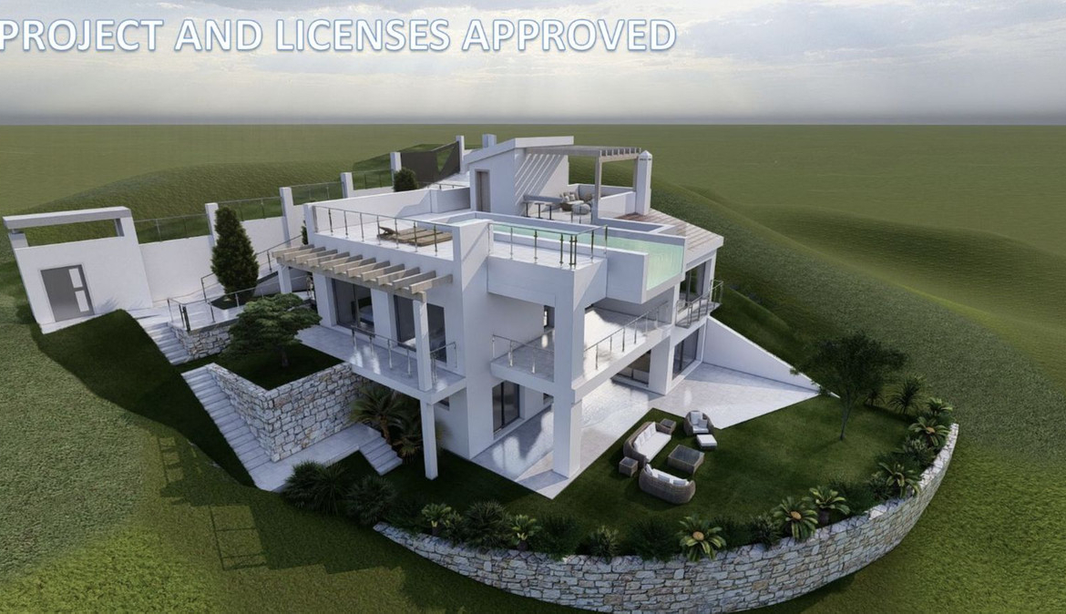 Project and licenses approved so construction can start as soon as the client wants. Off-plan luxury villa, 1st line golf in La Cala Golf consisting of 2 floors and a huge solarium with terrace and pool. This property will have 5 bedrooms, a studio/bedroom, 3 bathrooms, guest toilet, a fully fitted kitchen with all appliances, and terraces.