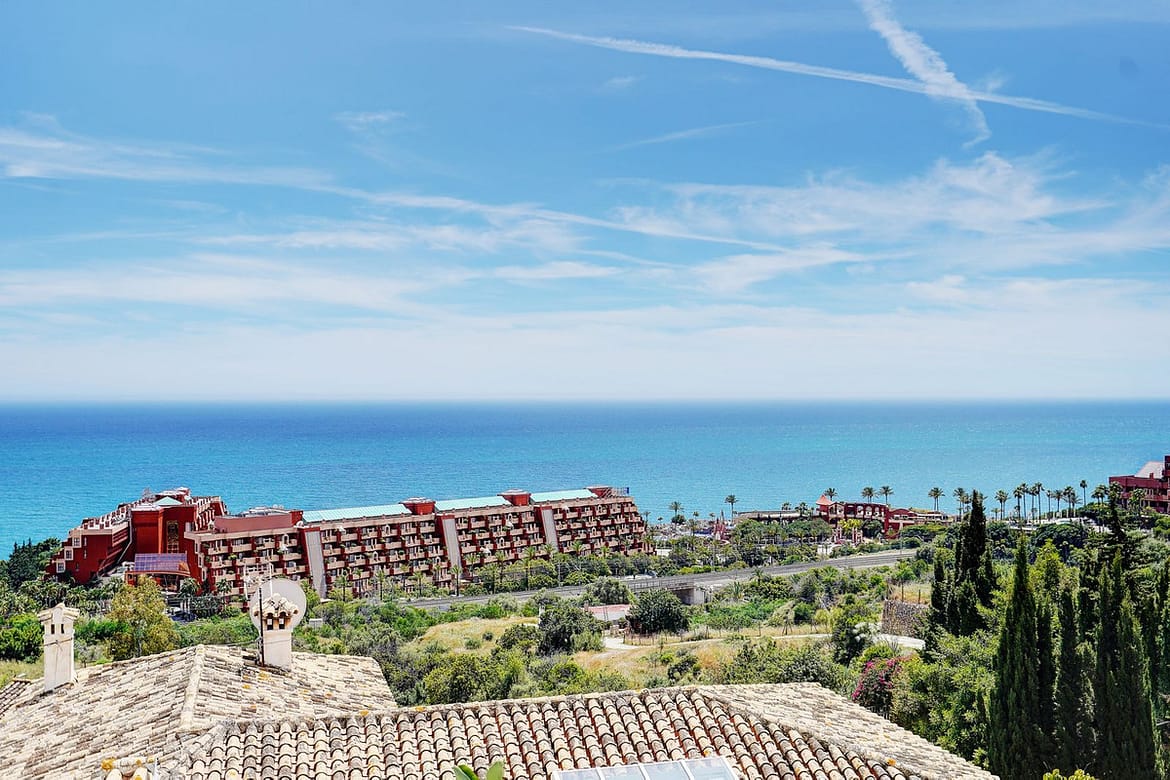 Set on a private plot of just under 1,000m² at the end of a quiet cul-de-sac, this detached Andalusian-style villa in La Capellania, Benalmadena, offers sweeping panoramic sea views and peaceful surroundings. A private gate opens to a beautifully maintained lawned garden, leading to the front door and setting the tone for the calm and privacy the home provides. The villa blends traditional Andalusian charm with modern features in a prestigious coastal location.