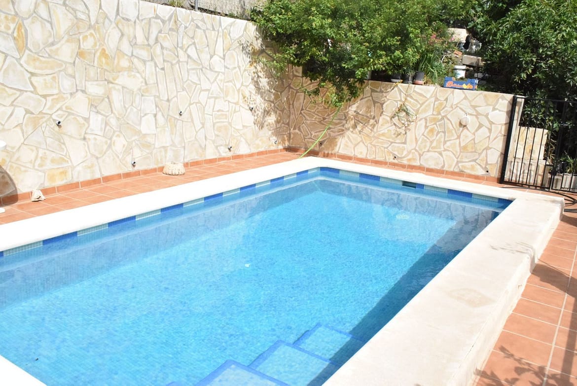 This detached house is located in the area of Rio Bermuza, a 10 minutes drive to the village of Viñuela and only a 20 minute drive to the coast. The accommodation is distributed on two floors and comprises a hallway, large lounge/dining room with a fireplace, a fully fitted kitchen, 5 spacious bedrooms, 2 bathrooms and a huge garage for 3 cars. There are several terraces, a BBQ area with a storeroom, a pool area, and a garden.