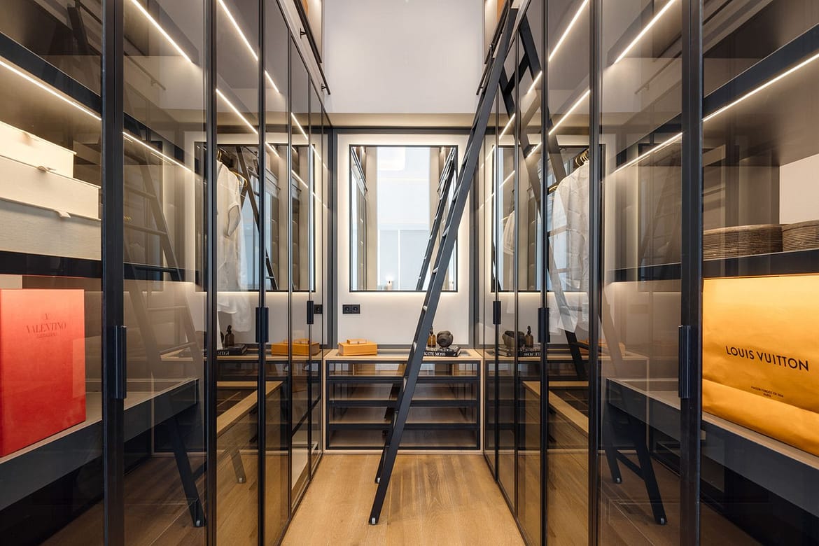 The lower level is designed for entertainment, complete with a custom bar and lounge, a glass-enclosed wine cellar, and a private cinema. A unique garage with a glass wall showcases your car collection as part of the home’s aesthetic.
