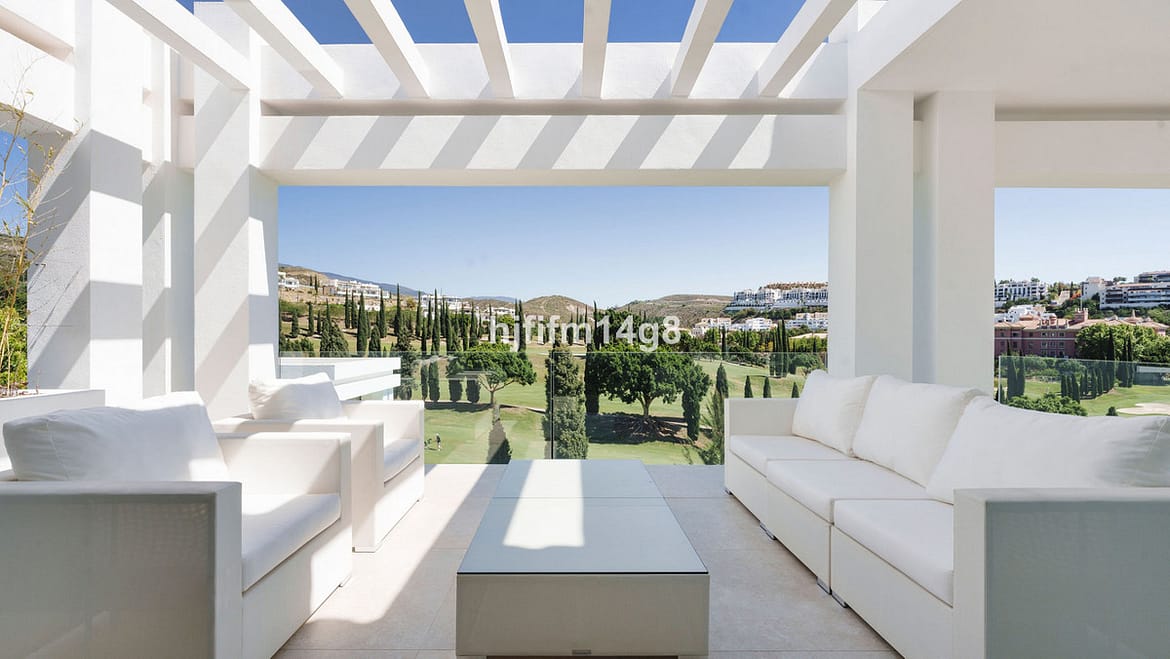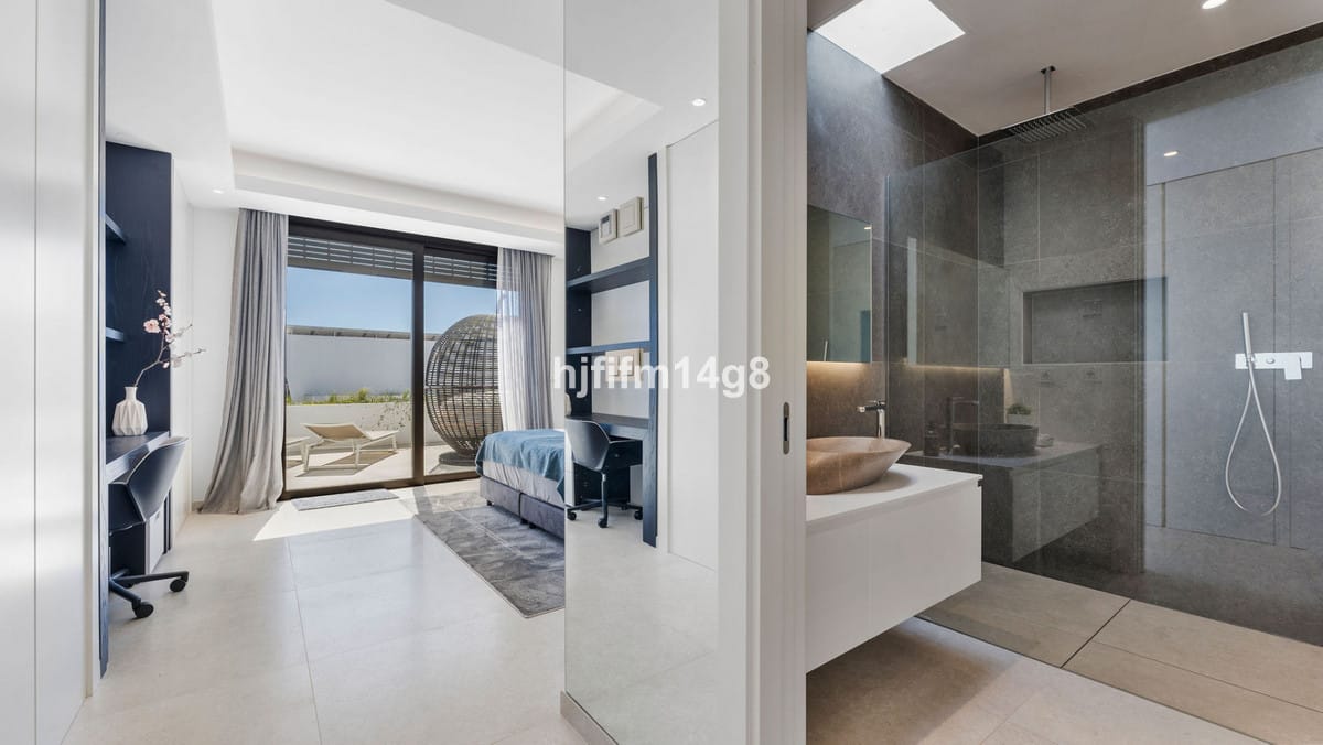 The main living area opens directly onto generous terraces and beautifully designed outdoor spaces. An impressive outdoor kitchen with top-of-the-line appliances is perfectly positioned just outside the living room, creating an exceptional al fresco entertaining area ideal for year-round dining. The exterior also features multiple lounge areas, sunbathing terraces and a stylish BBQ area, all overlooking the manicured fairways of Villa Padierna Golf.