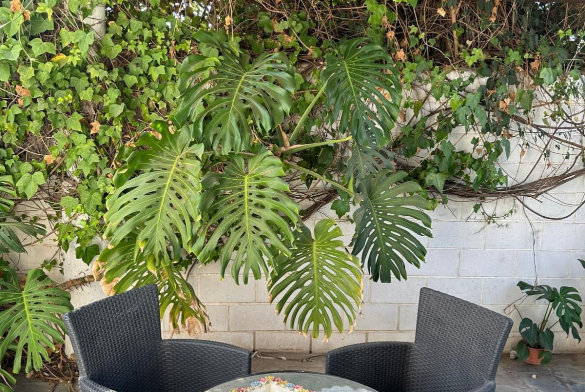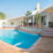 The villa features five spacious bedrooms, four bathrooms (two en-suite), a bright living and dining area overlooking the garden, a fully equipped separate kitchen with patio access, and generous terraces for year-round outdoor living. There is also a carport for two vehicles, solar panels for hot water, and a private water tank.