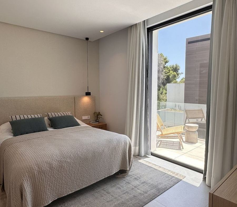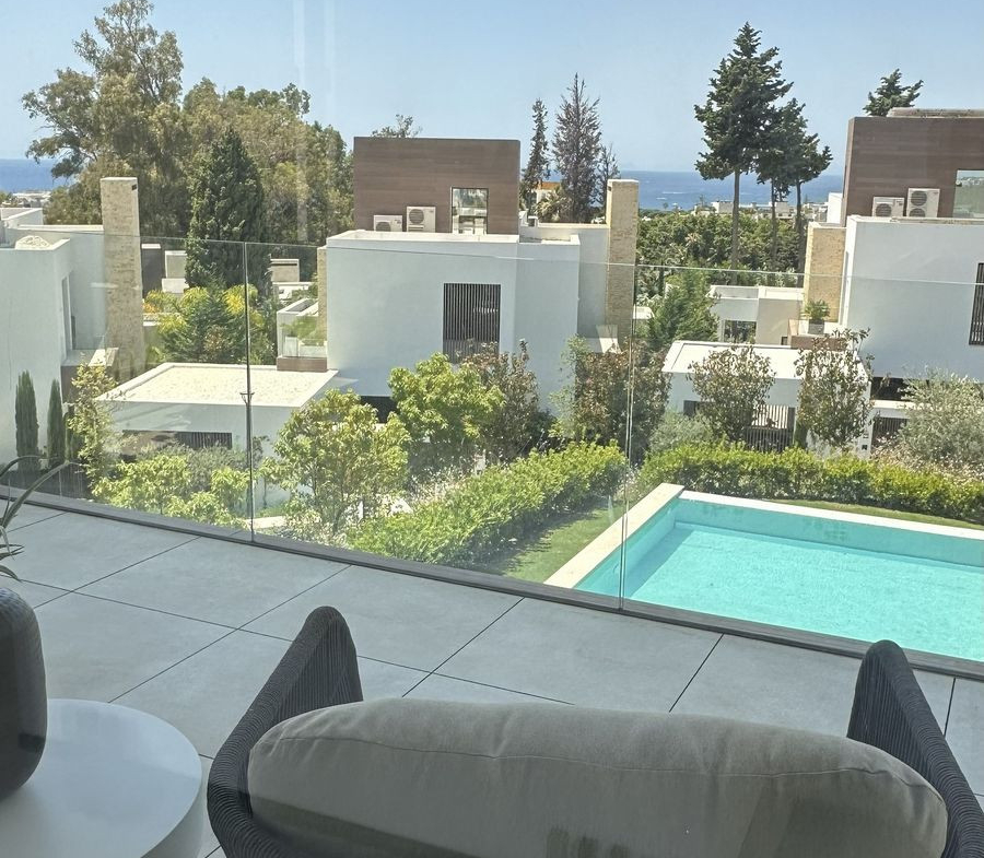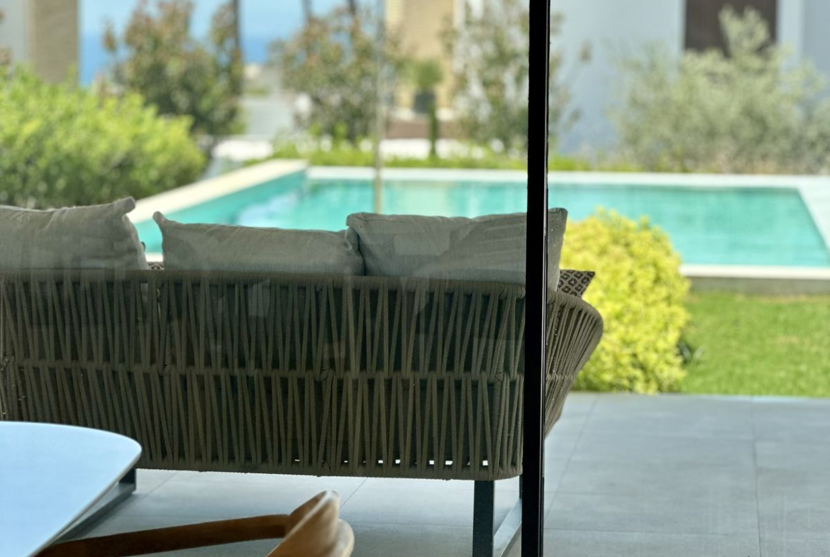 The property boasts 5 spacious bedrooms and 5 luxurious bathrooms, a private pool with panoramic sea views, and generous terraces perfect for outdoor living and entertaining. An elegant elevator connects the levels of the villa, ensuring comfort and convenience throughout.