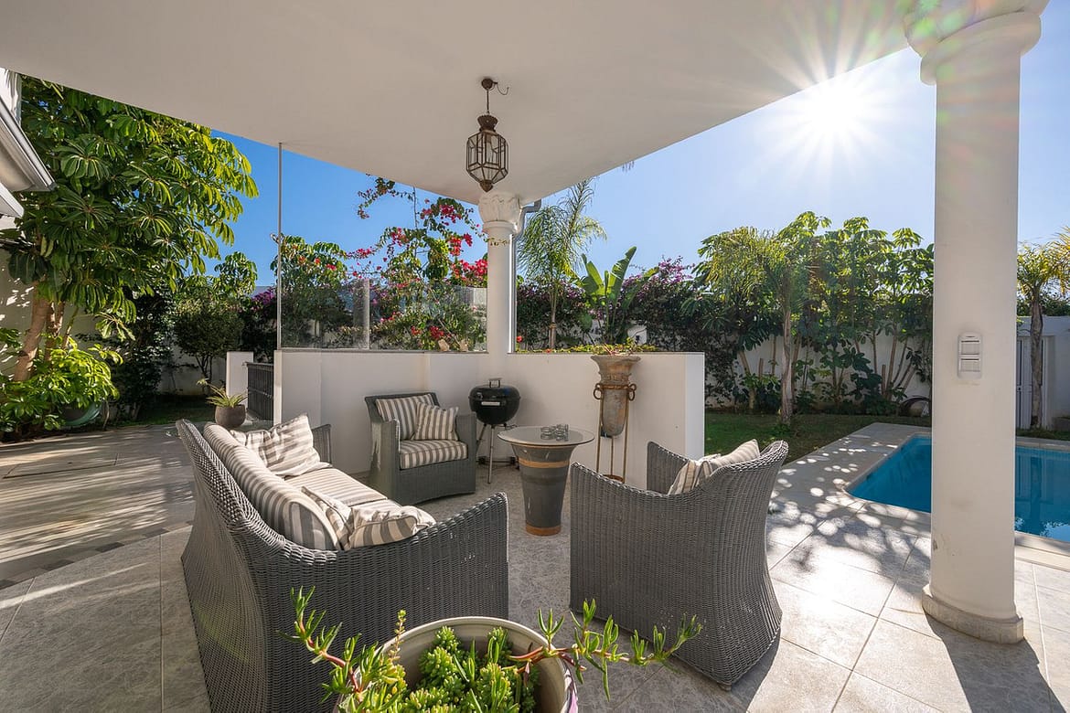 This charming and bright Andalusian style villa is located in the centre of the popular urbanisation of Marbesa.